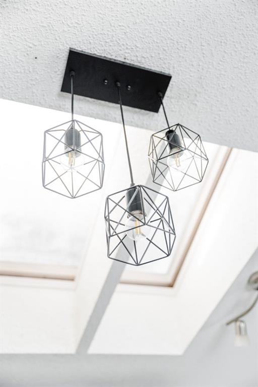 The kitchen offers ample cabinet and counter space, a convenient pantry, freshly painted cabinetry with new hardware, and updated stainless steel appliances including a fridge, dishwasher, and microwave completed in 2023, along with a gas stove. Raised skylights installed in 2021 bring in an abundance of natural light, making the space feel open and airy.