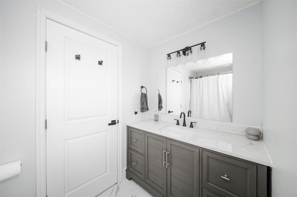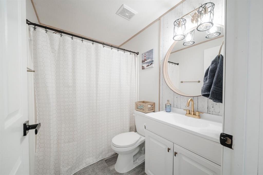 Down the hall is a spacious laundry room on one side and a practical mudroom on the other, complete with its own access to the deck. At the rear of the home, the large primary bedroom features a beautiful shiplap accent wall, a generous walk in closet, and a fully renovated ensuite completed in 2024.