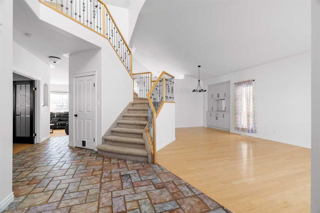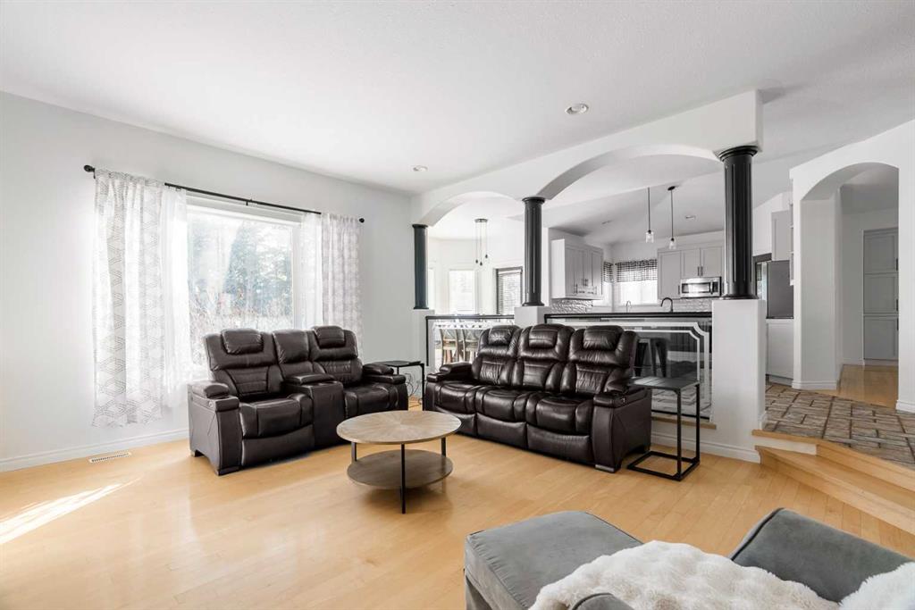 Welcome to 324 Burton Place — this impressive 5-bedroom, 3.5-bath home located in the desirable Timberlea neighbourhood offers over 3,100 sq ft of living space with CENTRAL AIR, Cathedral Ceilings, open to above elegant staircase and backing onto green space with NO NEIGHBOURS BEHIND for added privacy. As you enter the home, you will be welcomed into a bright a living room with hardwood flooring and formal dining area with build-in cabinets. At the back of the home is the generous kitchen with gorgeous tile flooring, massive wood island workspace, ample cabinetry, two sinks, a corner panty, and adjoining breakfast nook. Separated by 3 columns, archways and glass railing is a cozy family room with fireplace providing additional living space. The main floor also has a bedroom or office that would be perfect for working from home. Main floor laundry and a convenient 2-piece powder room complete this well-designed level. Upstairs, the oversized primary retreat offers a walk-in closet, carpet flooring, private fireplace, and a spacious 5-piece ensuite with jetted tub, stand up shower and his and hers sink. Also on this level are two additional large bedrooms and a full bathroom. The basement expands your living options with a fourth bedroom, large recreation room, bar area, theater room, 3-piece bathroom and storage. This spacious home delivers exceptional room for growing families and those who love to entertain. The fully fenced backyard features a large deck, a fire pit and a gate for easy access to the GREENBELT Birchwood trails behind. Situated on a 5,839 sq ft lot with a double attached garage with driveway parking. Close to parks, schools, shopping, and walking trails, this home combines size, privacy, and location — a rare opportunity in today’s market.
