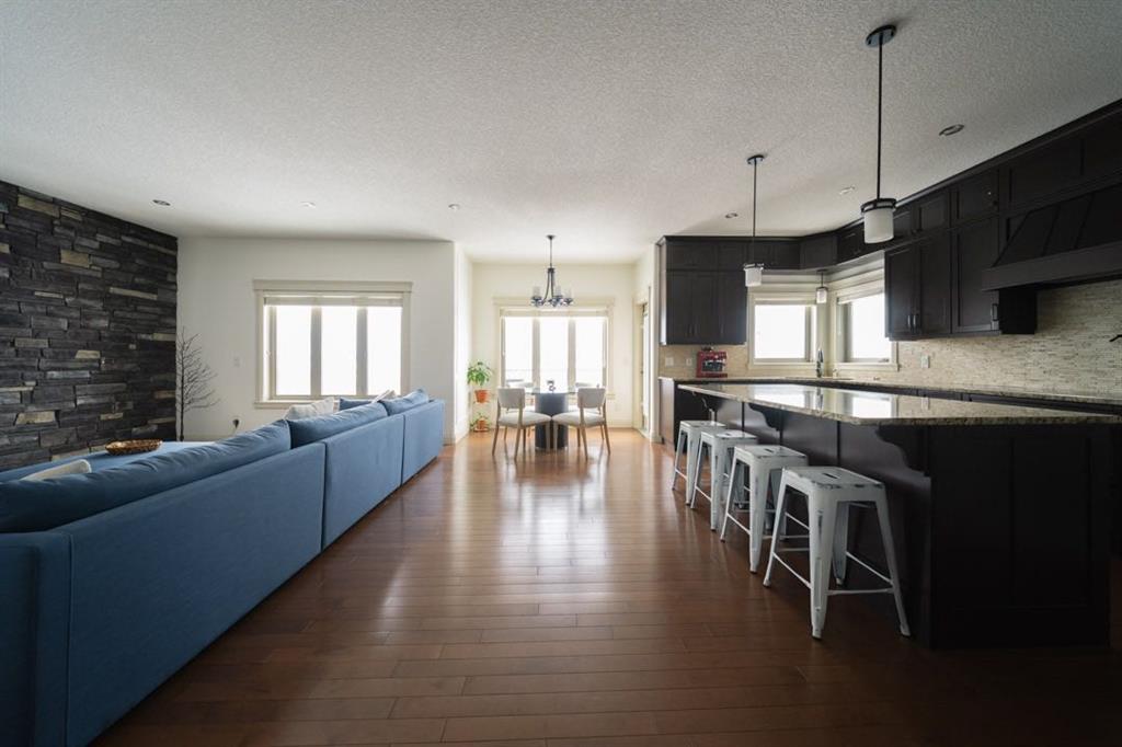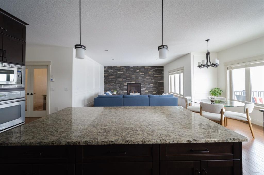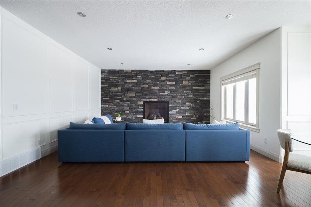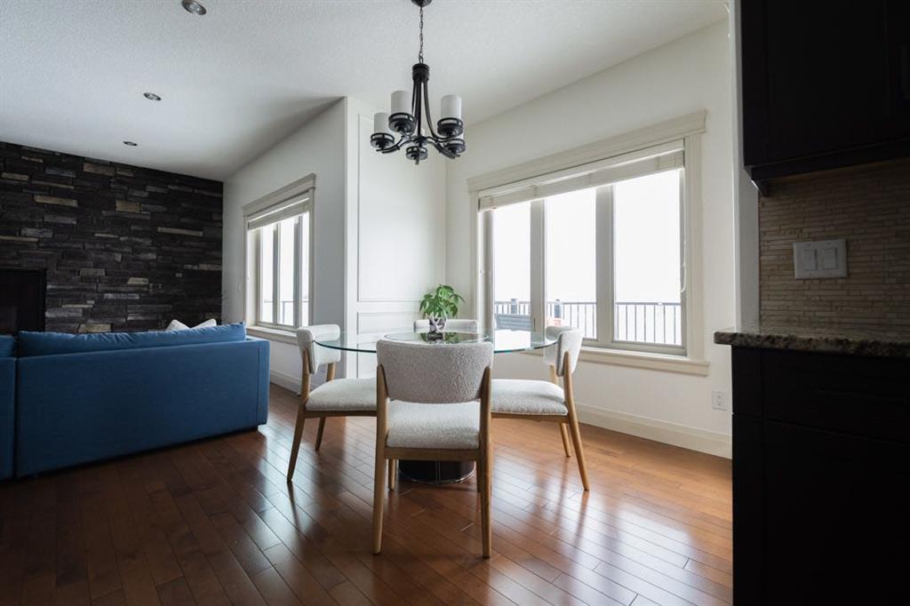 From the moment you enter, the soaring foyer ceilings and grand chandelier create a stunning first impression. Hardwood and tile floors guide you through the main level where natural light pours in from large windows, filling the space with warmth throughout the day. The living room is the heart of the home, anchored by a beautiful stone veneer gas fireplace with remote and elegant wall mouldings that create a cozy yet refined atmosphere.