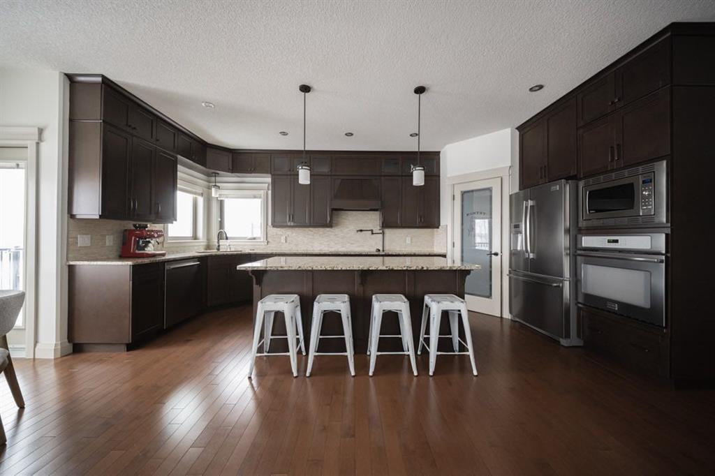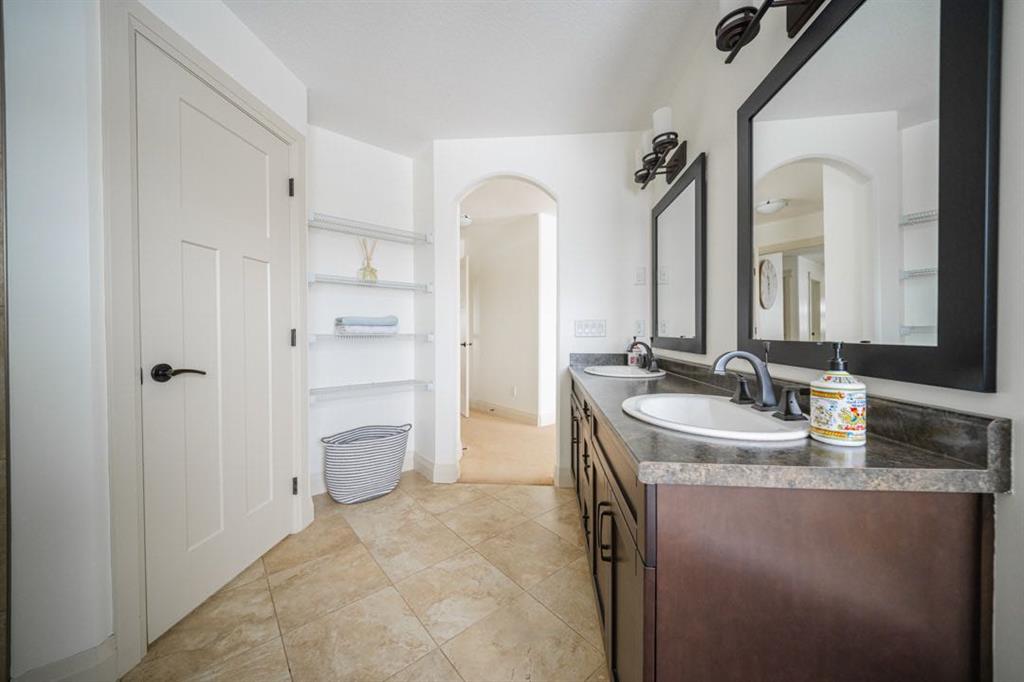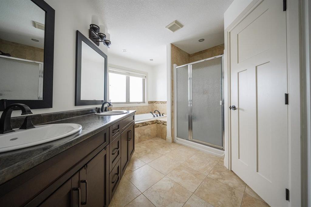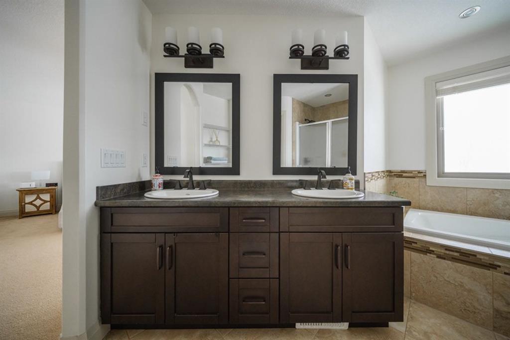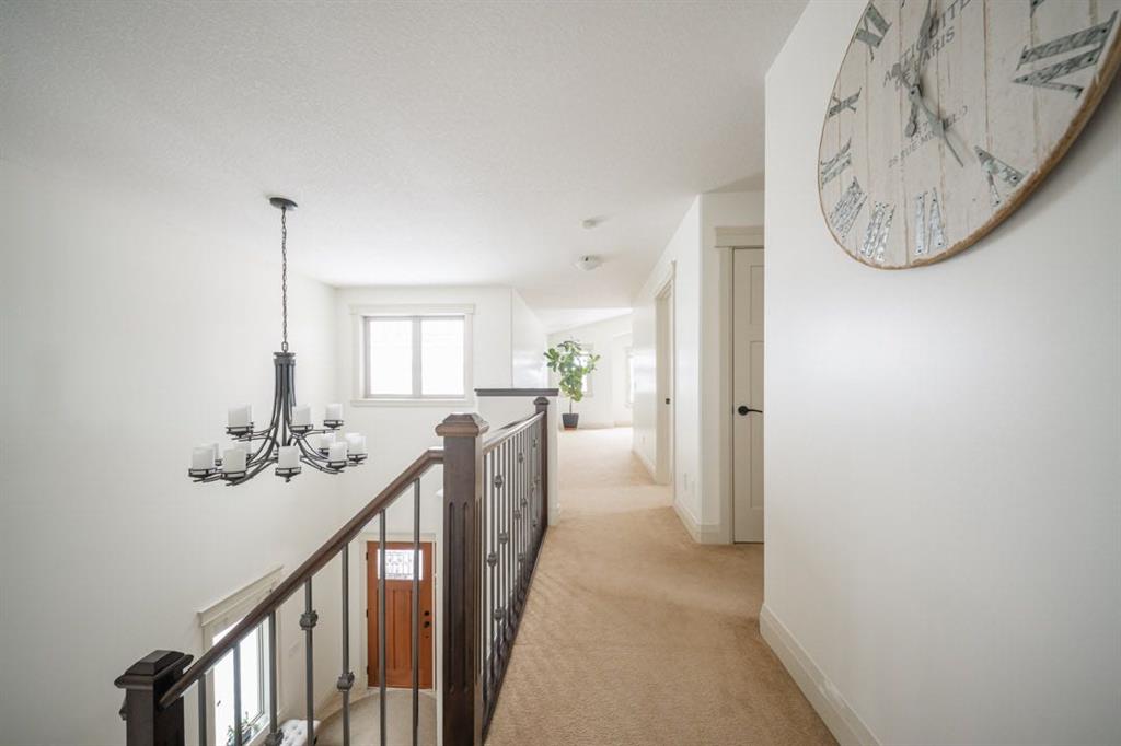 Upstairs you’ll find three spacious bedrooms including a stunning primary retreat at the top of the stairs with space for a king bed and sitting area. The ensuite features dual sinks, a jetted soaker tub, separate shower, water closet, and a large walk in closet.