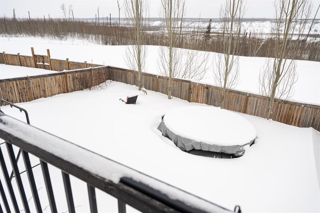 Outside, the fenced backyard offers a peaceful retreat with mature landscaping, a Roman stone patio fire pit area, and direct access to the greenbelt where wildlife, northern lights, and beautiful sunrises are part of daily life.