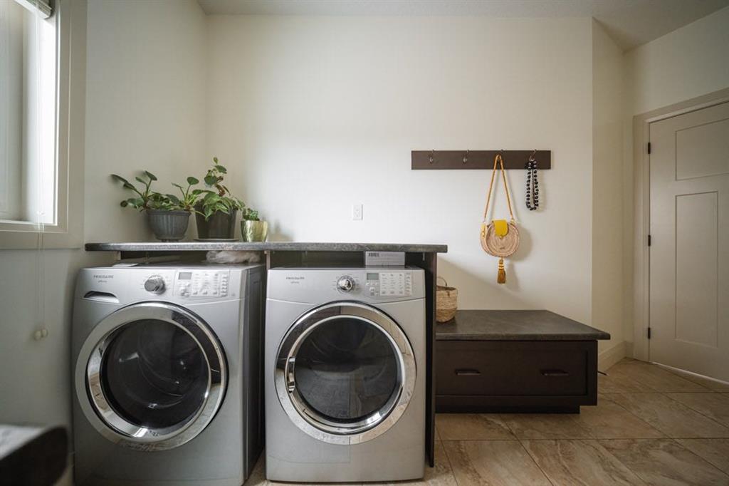 A main floor den with double glass doors offers the perfect office or flex space while the large mudroom style laundry room with sink sits conveniently near the garage entry.