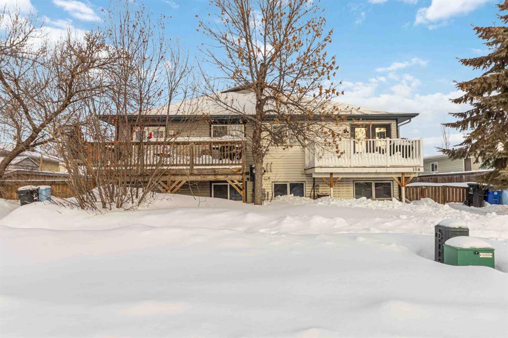 If you are looking for a COMPLETELY RENOVATED home positioned perfectly in a family friendly neighborhood with an OVERSIZED DOUBLE DETACHED GARAGE PLUS parking for 5 (yes 5 additional!), then 104 Silin Forest is the home for you. Fully updated from top to bottom in 2022, this 3 bed, 2 full bath home with NO CONDO FEES will have you gasping upon entry. Let’s start with the stunning CUSTOM KITCHEN, with shaker style cabinetry + gold accents, wooden open shelving, stainless steel Samsung appliances, pot lighting, an 10 foot eat up kitchen island with Calacatta Quartz waterfall countertop, a large pantry and additional storage in your coffee/dry bar. The open concept main floor, featuring the beautiful vinyl plank flooring that runs throughout both floors of the home, has a spacious living room, dining area, and leads to your front balcony – with composite decking & aluminum railing - perfect for BBQ season! The primary bedroom on the main floor is spacious with one wall of wardrobe cabinets plus a large walk in closet! Adjacent the bedroom is the updated 4 piece bath. Downstair you will find the SECOND LIVING/REC ROOM, plus two spacious bedrooms, another updated 4 piece bath renovated the same as the upstairs bath) and the laundry storage room, with new washer and dryer in 2022. Outside, this home sits on a 4600 sq ft lot that is landscaped and partially fenced. The OVERSIZED DOUBLE GARAGE is heated, with a parking pad that could fit up to 5 vehicles or toys/trailers and faces the WIDE back alley, with a fence on the opposite side, perfect for privacy while you tinker away in your garage or the kids shoot hoops on the pave (*hoop not included!) Updates in 2022 include NEW SHINGLES on the home and garage, new venting, NEW FURNACE & HOT WATER TANK and a new GARGE HEATER in 2025! This home has all major items taken care of, is situated next to Thickwood Elementary, walking trails, parks, 3 playgrounds (who’s counting!) and one block away from groceries, pharmacies, restaurants and more! If you think you might want to be the next owner book your showing NOW!