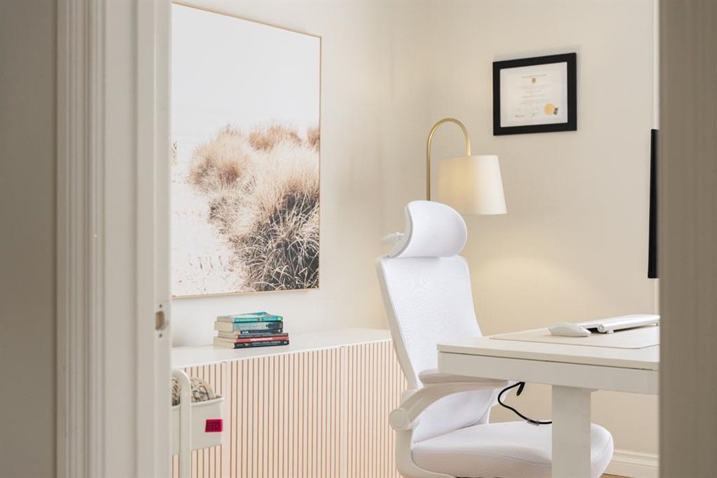 A main floor office with a closet offers flexibility and could easily serve as a sixth bedroom if desired.
