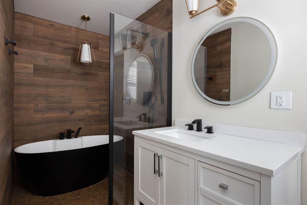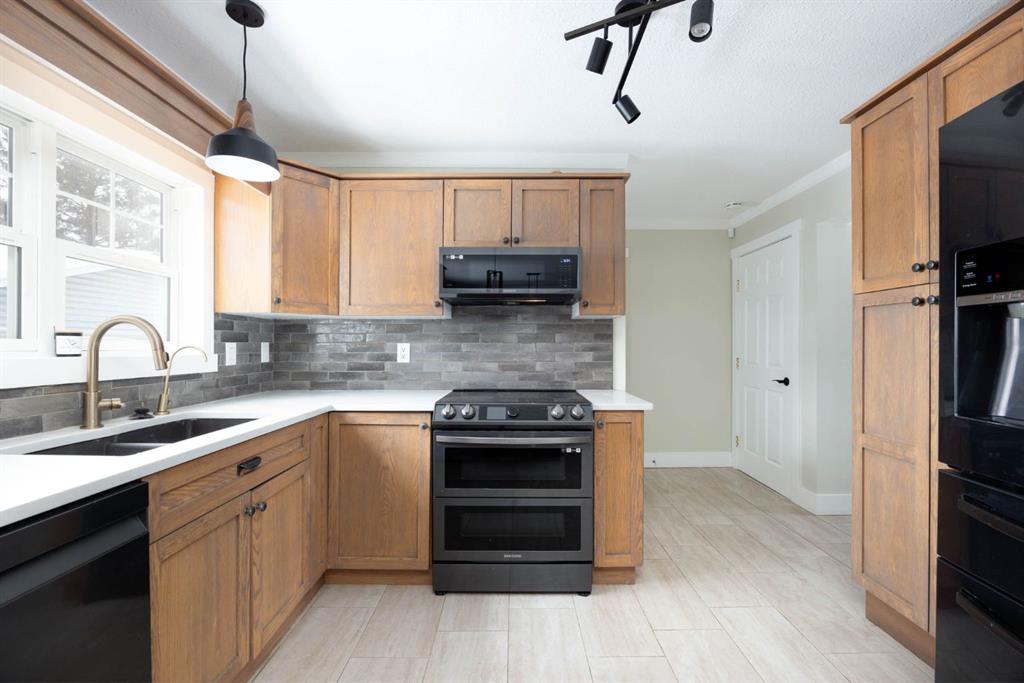 The updated kitchen features quartz countertops and modern lighting, creating a bright and stylish space for cooking and entertaining. The main floor also boasts newer flooring and a comfortable living room area, perfect for relaxing with family or hosting guests. A unique dog wash station in the main floor hallway adds a thoughtful touch for pet owners.