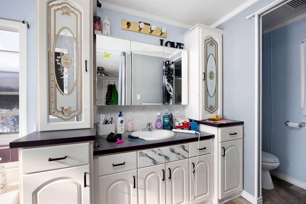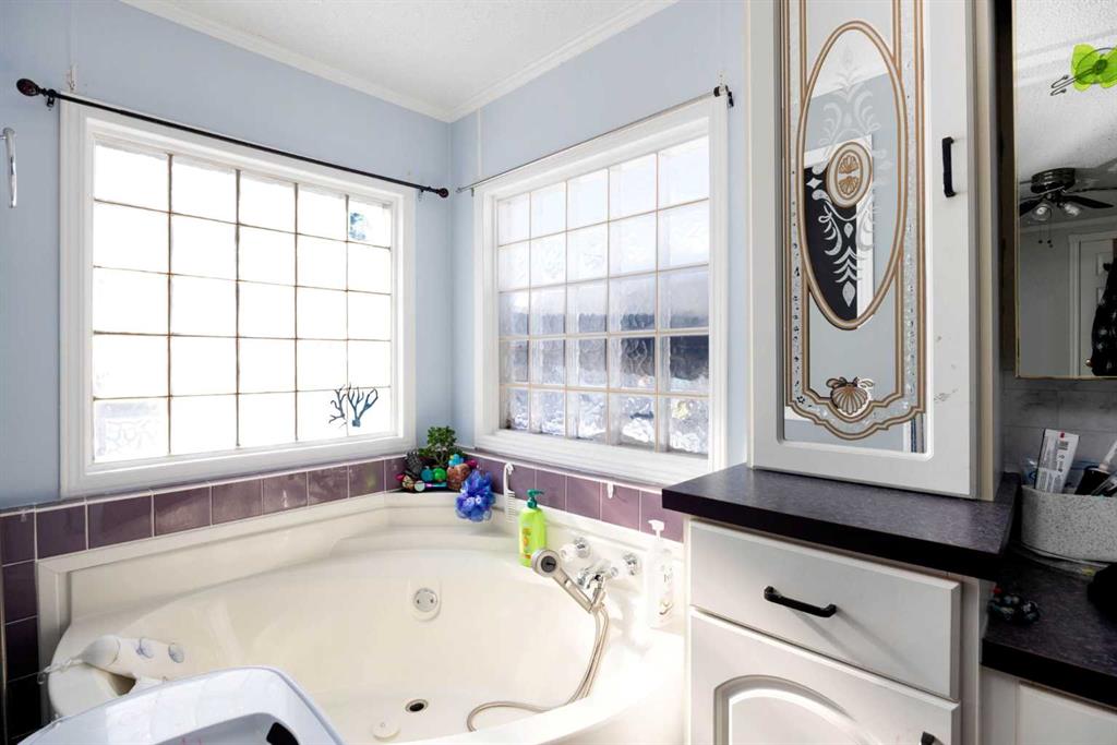Inside, you’ll find a bright, open-concept layout with updated flooring and a spacious living room that feels welcoming from the moment you walk in. The kitchen is designed for everyday living, featuring white cabinetry, a functional island bench, and plenty of storage. The primary bedroom offers a quiet retreat with a built-in closet and a 4-piece ensuite complete with a corner tub. Large windows in the ensuite create a warm and relaxing atmosphere you will enjoy coming home to.