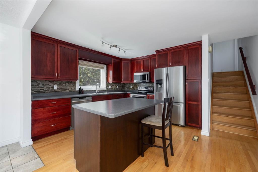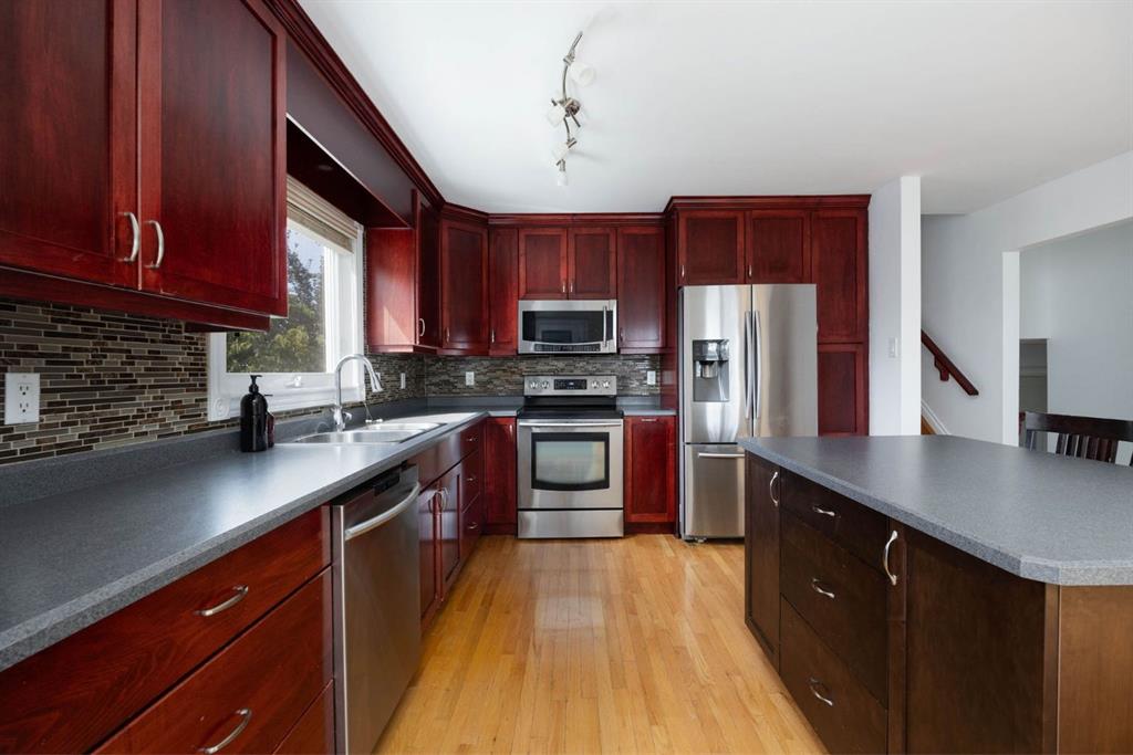 Perfectly situated on a corner lot in an established neighbourhood in Thickwood, this charming fully developed home offers 1,555 square feet of living space, ideal for a growing family. Nestled in a family friendly, quiet cul-de-sac, this family home provides both comfort and convenience. You'll be welcomed by a cozy and spacious living room adorned with big vinyl windows that floods the space with natural light. The spacious kitchen features ample cabinetry, generous counter space, stainless steel appliances and an eatup island that overlooks the dining area and provides direct access to the two tiered deck in the backyard. Upstairs, discover a master bedroom (complete with full ensuite) and two additional bedrooms that share a full bathroom. The family room, complete with a wood-burning fireplace, offers a warm retreat during the winter months. From here, step out into the large backyard that is surrounded by mature trees, providing both privacy and enough space for a trampoline, pool, play set or all of the above! An additional bedroom, full bathroom, laundry room and ample storage in the functional crawlspace completes the basement. There is no shortage of parking space between the attached garage and elongated driveway, suitable for RV parking. This fully developed family home is ideally located close to schools, parks, and just down the street from walking trails, making it a perfect choice for those seeking privacy and convenience. Call to book your viewing today!