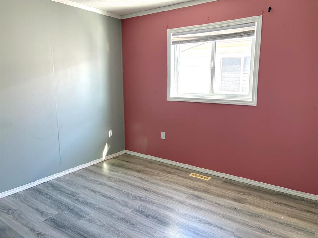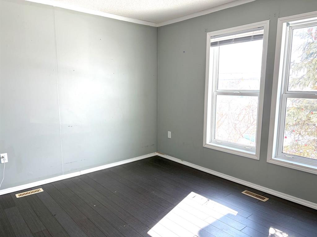 Welcome to 109 Elm Street. A rare 4 bedroom mobile home with no condo fees. This property features vaulted ceilings, a gas fireplace, laminate and linoleum flooring (no carpet). The front of this home has 2 bedrooms and a 4PC bathroom, Your are then greeted with an open concept living room-kitchen- dining nook. The kitchen has an eat up bar and the dining nook has patio doors leading to the fenced yard. Conveniently located close to parks, schools, shopping, and walking trails, this property offers a fantastic opportunity for homeowners or investors alike. SOLD AS IS WHERE IS!