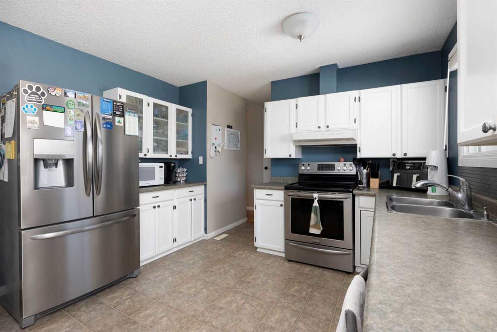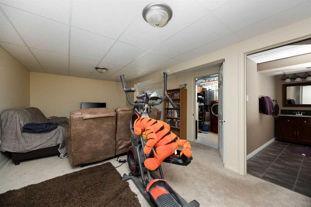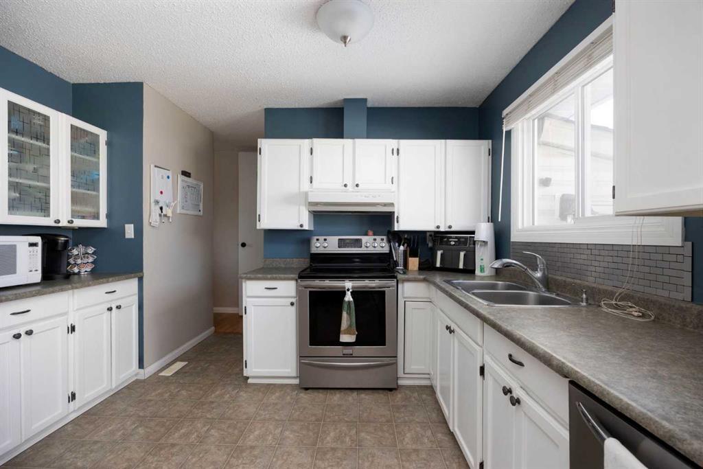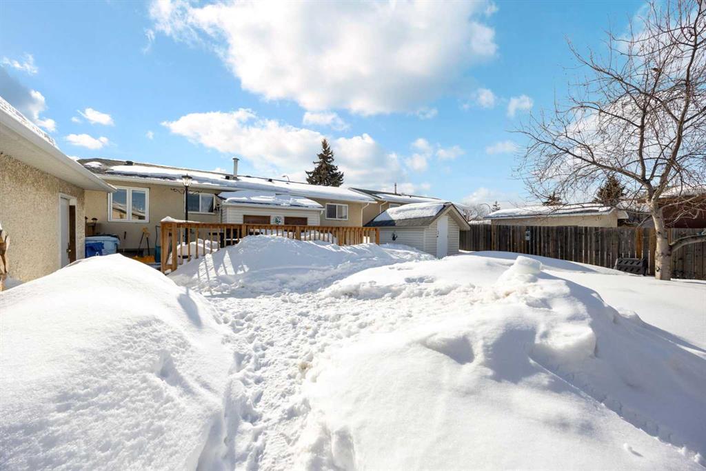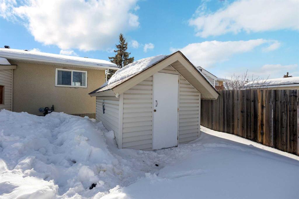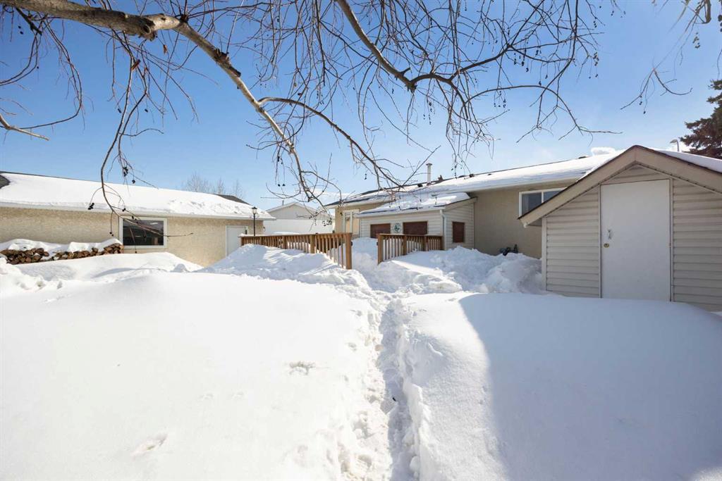 Welcome Home! This fantastic 4 bedroom bungalow with oversized Double Detached Garage and RV Parking in the heart of Thickwood! This home sits on a 7100 sqft lot, with no neighbours behind you. The main floor is bright and sunny with a large front window framing the living room. The kitchen features white cabinets, ample counter space, and overlooks the spacious backyard. Three bedrooms, including the large primary, and 4pc bathroom complete the main level. The back entrance leads to the fully developed basement, with a huge rec room, fourth bedroom, updated 3 pc bathroom with in floor heat, storage room and laundry/utility room. The roof shingles are only a year old, there is central A/C, a storage shed, and a large back deck. This home is walking distance to schools, shopping, parks and walking trails, and is located close to bus stops. If you are looking for a great home with lots of parking and an awesome location, this is the one!