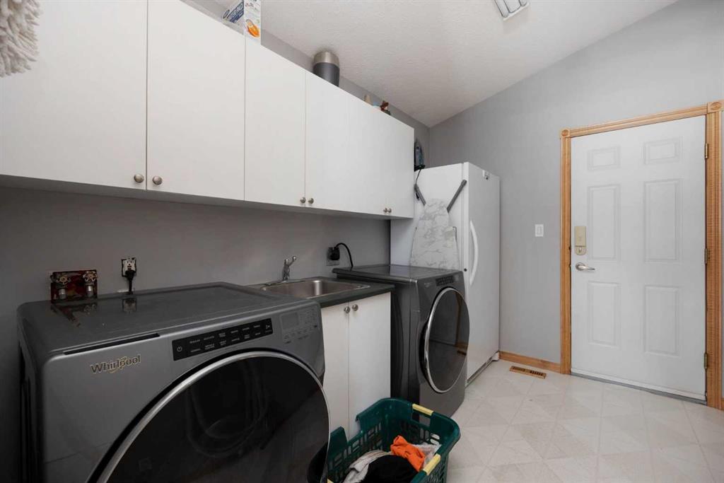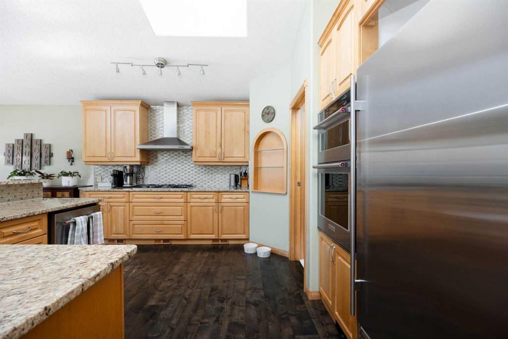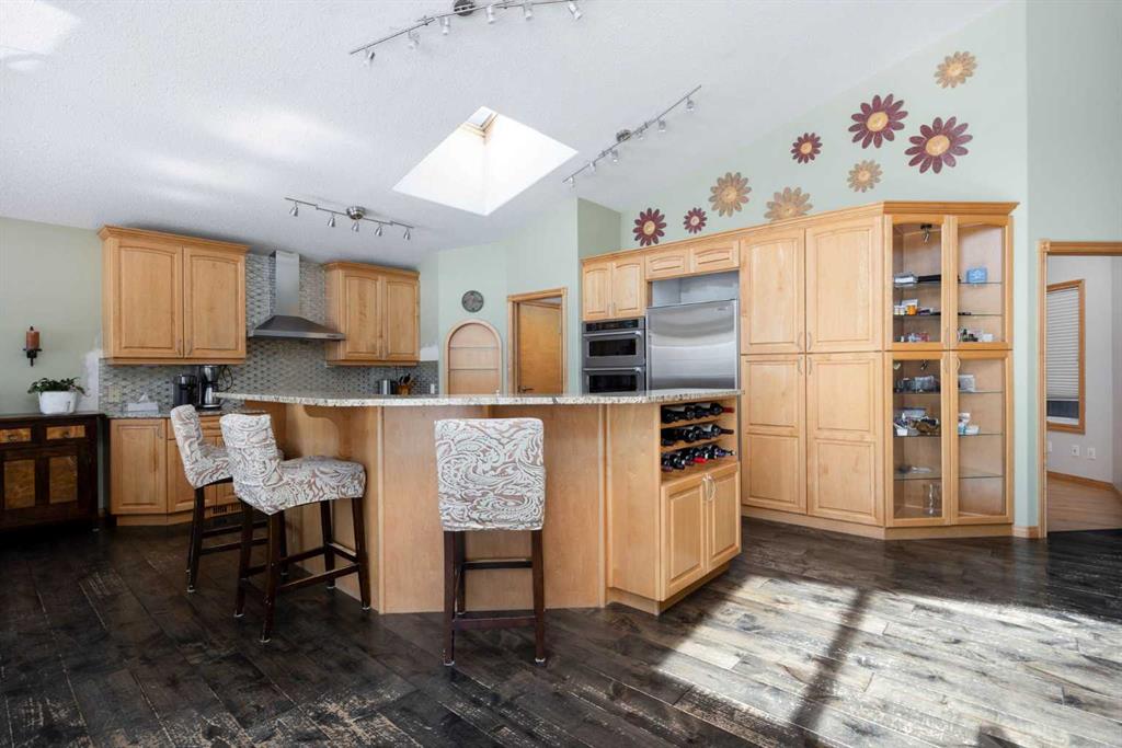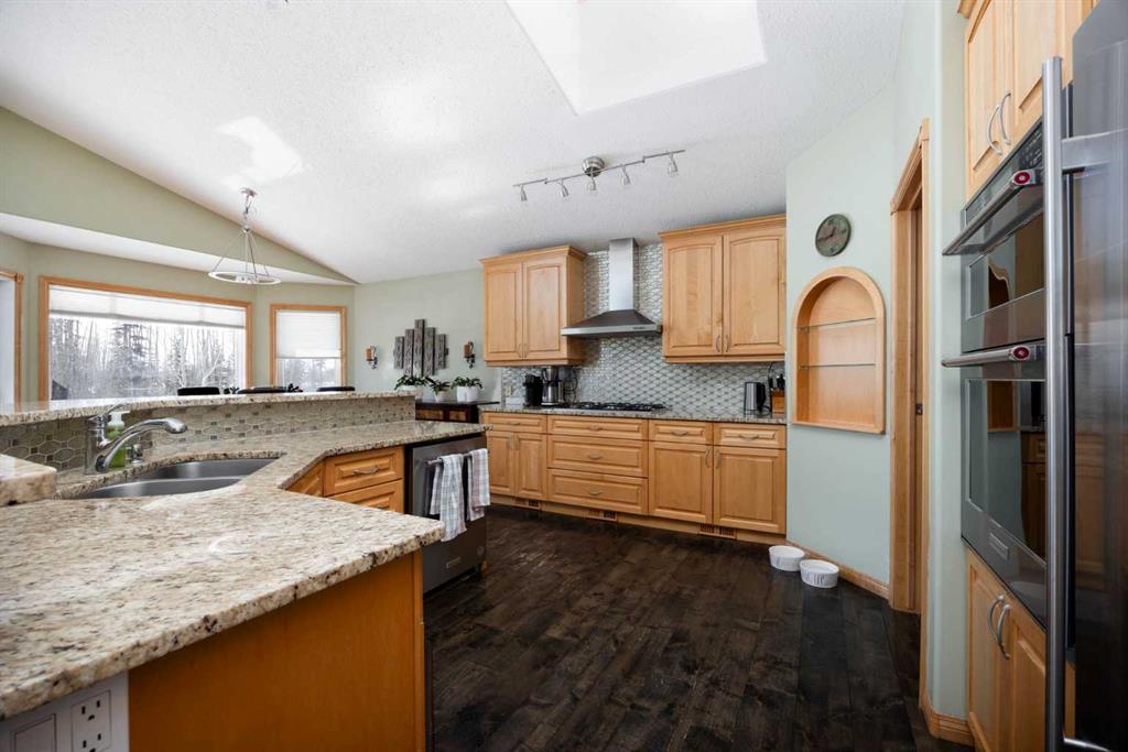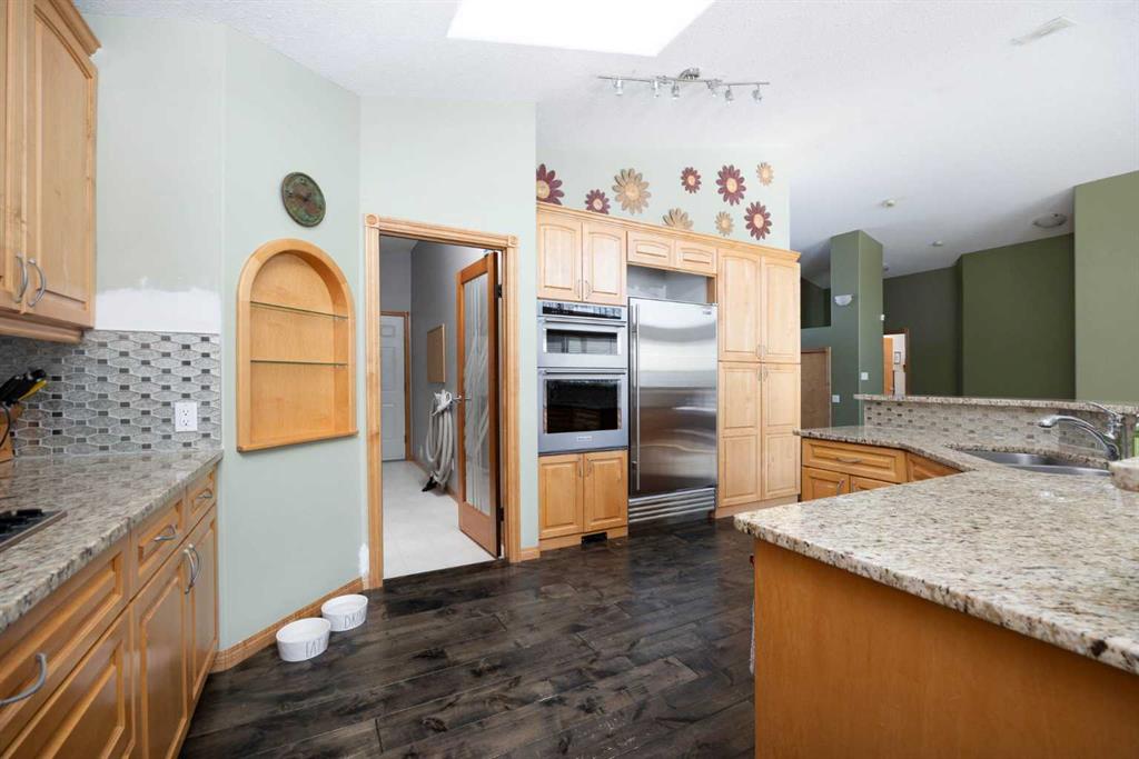 Welcome to 147 Berard Crescent, a spacious and well-maintained 4-bedroom, 3-bathroom bungalow situated on an impressive 11,237 sq ft lot, offering over 3,300 sq ft of total living space, a HEATED DOUBLE ATTACHED GARAGE, NO NEIGHBOURS BEHIND, and BACKING ONTO GREEN SPACE for added privacy. The main floor features a bright open-concept layout highlighted by a central gas fireplace, vaulted ceilings, and large windows that allow natural light to flow effortlessly throughout. The well-appointed kitchen is complete with granite countertops, a large island with breakfast bar, pantry, skylight, and ample wood cabinetry, seamlessly connecting to the dining and living areas—perfect for everyday living and entertaining. The generously sized primary bedroom offers a walk-in closet and a luxurious 5-piece ensuite with double vanity. Two additional bedrooms, a full bathroom, and a convenient main floor laundry room complete this level. The fully finished basement provides exceptional additional living space with a massive recreation room, separate bonus room, two bedrooms, full bathroom, and plenty of storage. Step outside to enjoy the private backyard featuring a massive deck and built-in BBQ, ideal for entertaining or relaxing while overlooking the peaceful greenbelt. Located close to parks, schools, walking trails, and amenities, this home offers an outstanding combination of space, privacy, and location—perfect for families seeking comfort and room to grow. Book your private showing today!