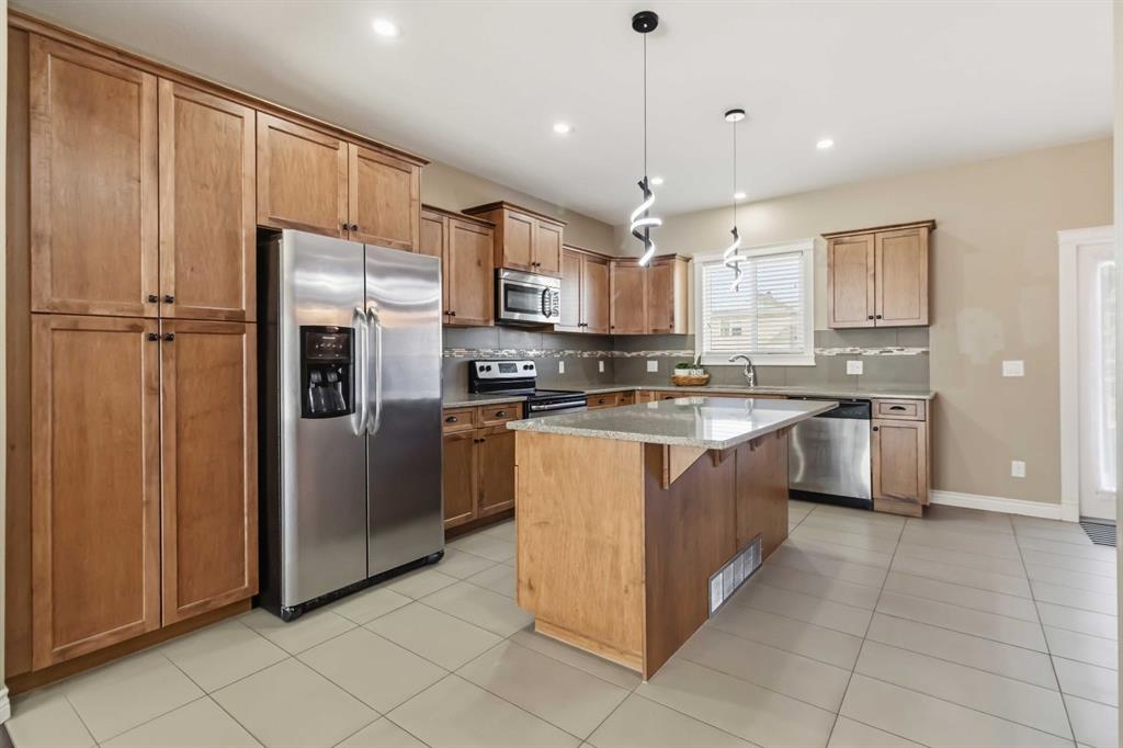 The main floor offers a bright and inviting layout with large windows that fill the space with natural light. The kitchen, dining, and living areas flow seamlessly together, highlighted by stylish feature walls in the living room. The kitchen is well-appointed with granite countertops, a large island, and ample cupboard space…perfect for both everyday living and entertaining.