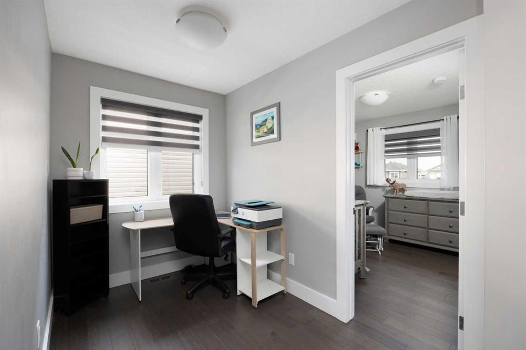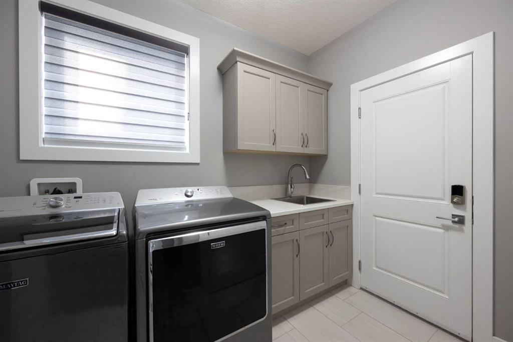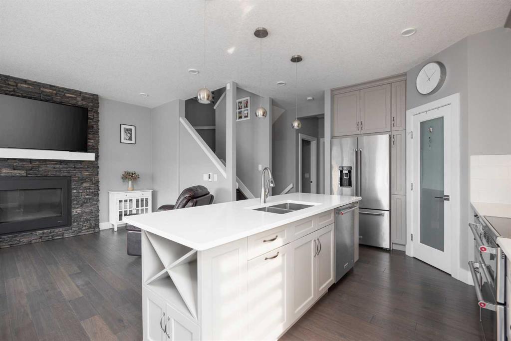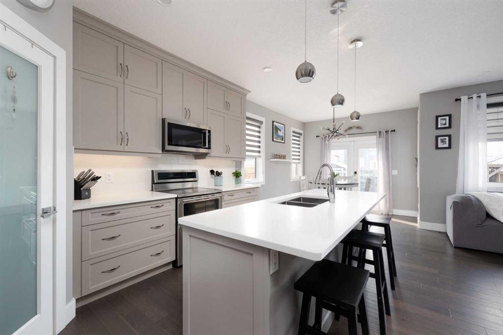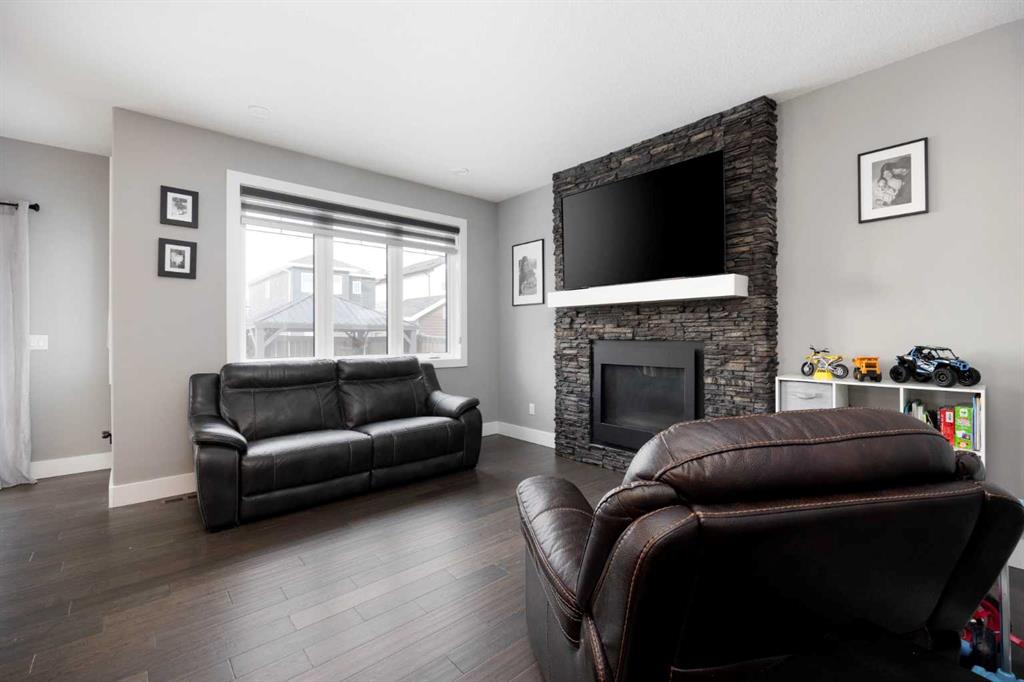 Thoughtfully designed, this elegant home features five bedrooms—three on the upper level and two in the fully developed basement—along with three full bathrooms and a stylish powder room. The main floor welcomes you with a warm and inviting living space centered around a gas fireplace, highlighted by a striking brick feature wall. The adjoining dining area flows seamlessly into a beautifully appointed kitchen, complete with ceiling-height cabinetry adorned with crown moulding and valance lighting, complemented by sleek quartz countertops. A full suite of high-end stainless steel KitchenAid appliances enhances both form and function. A convenient main floor laundry room and powder room complete this level, with direct access to the attached garage.