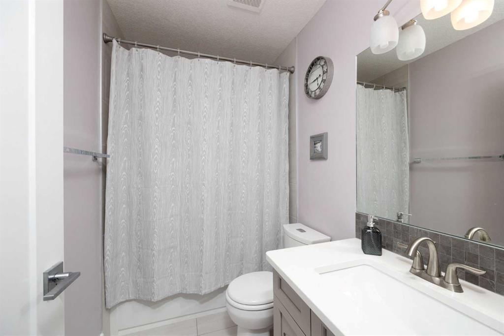 Upstairs, the private quarters offer three generously sized bedrooms and two full bathrooms, including a primary bedroom featuring a walk-in closet and a spa-inspired ensuite with a tiled walk-in shower and seamless glass enclosure. The fully finished basement provides additional living space with in-floor heating, two bedrooms, and a spacious recreation area—perfect for entertaining or relaxing with family.