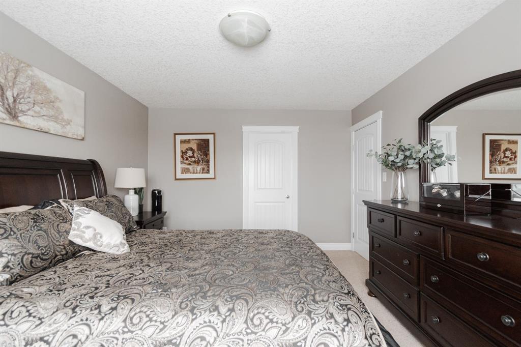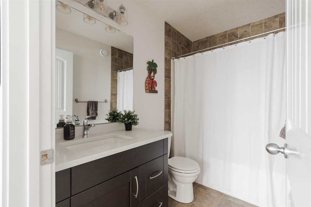 Upstairs, all bedrooms are finished with soft carpet. The primary suite is spacious enough to accommodate a king size bed and offers a large walk in closet and a five piece ensuite complete with dual sinks, new lighting and countertops that match the kitchen, and a tiled jetted tub. A second four piece bathroom on this level has also been updated with a new vanity, countertop, and lighting, providing a cohesive and refreshed look.