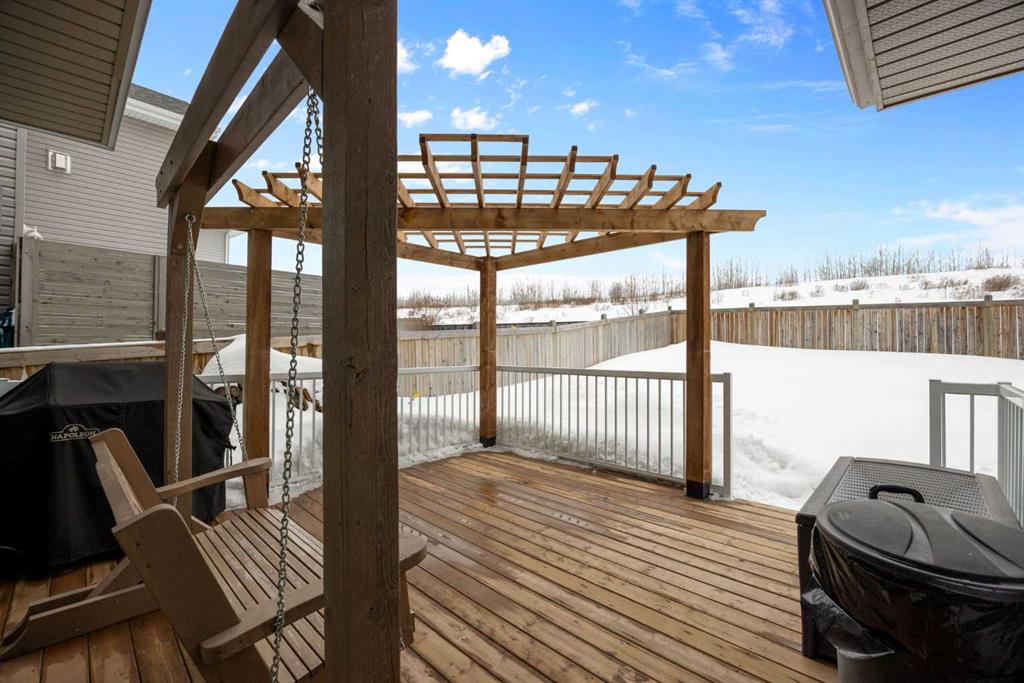 Step outside to a fully fenced yard with a back deck and pergola, along with a stone patio area ideal for a fire pit and perfect for enjoying summer evenings. The heated 22 x 23.6 double garage offers ample space for most trucks and includes hot and cold water taps for added convenience.
