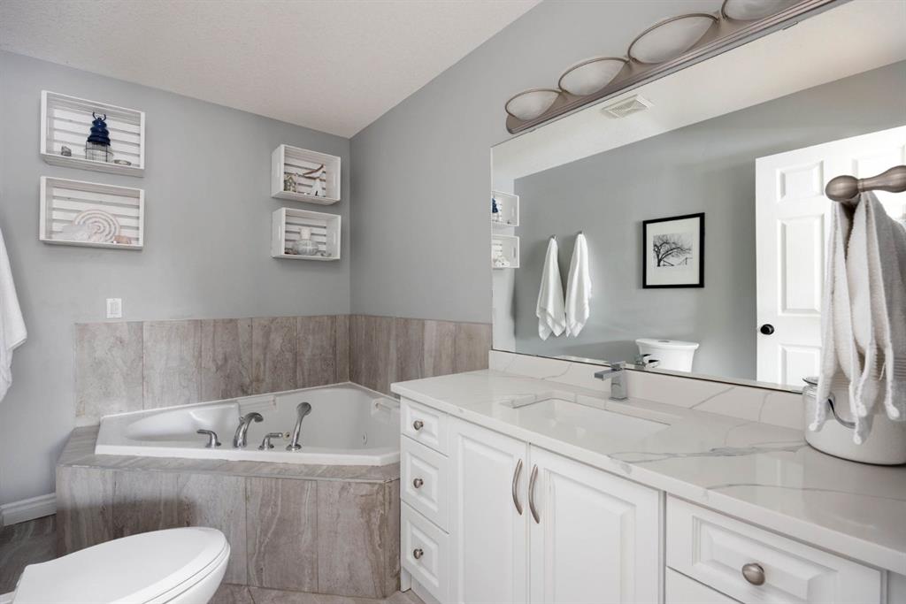 The spacious primary bedroom offers a walk-in closet, ensuite with a luxurious jetted tub, and a second access point to your private backyard. The fully finished basement is built for lifestyle with two large bedrooms, a full bathroom featuring another jetted tub and in-floor heating, a second fireplace, and a massive rec room with a pool table - plus an impressive amount of storage space that truly sets this home apart.