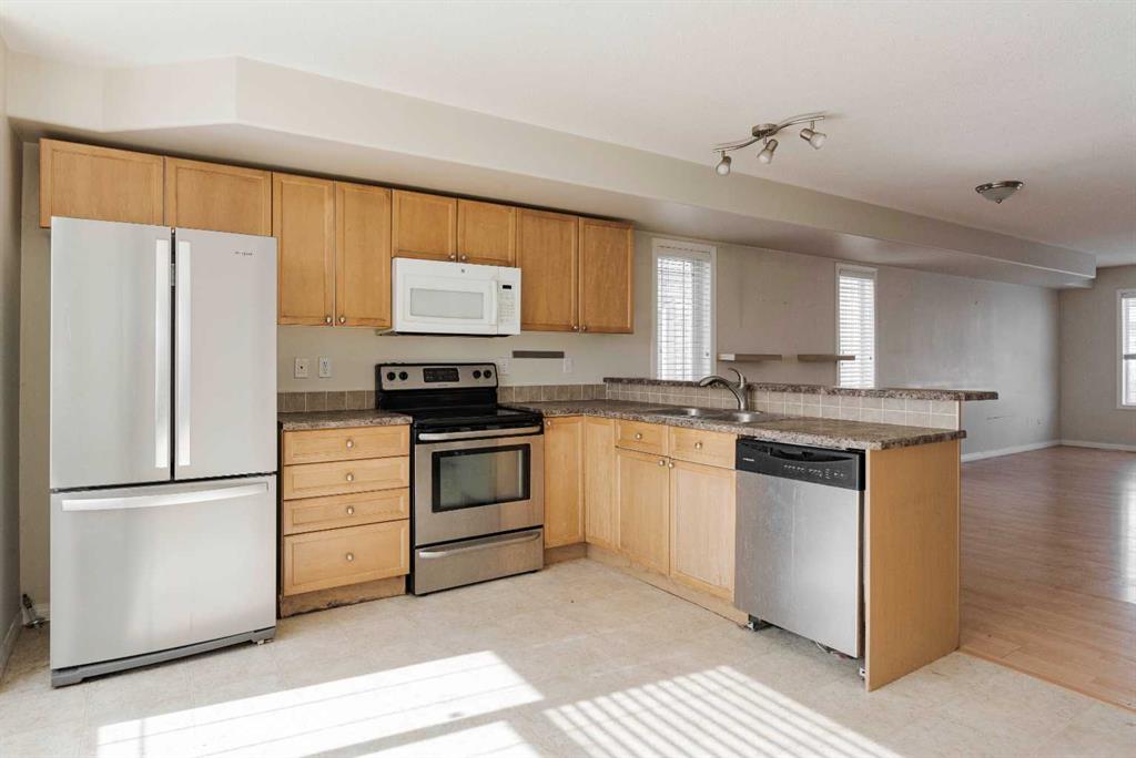Welcome to Winchester Villas—END UNIT WITH ATTACHED GARAGE: an opportunity to get into the market at an accessible price point in a well-located, established complex. This 3-bedroom townhome offers great potential for buyers willing make some personal touches and make it their own, or for investors looking to add value. The upper main level features a functional layout with an open-concept living and dining space, complete with a cozy gas fireplace and a kitchen that includes an eat-up bar and ample cabinetry. From here, step out to the rear balcony—perfect for your morning coffee or evening unwind. Upstairs, you’ll find a spacious primary bedroom with a walk-in closet and ensuite, along with two additional bedrooms and a full bathroom, providing plenty of room for a family or tenants. The lower level offers added flexibility with a partially finished space that could serve as a rec room or fourth bedroom, along with a partially completed bathroom—ready for your finishing touches. Located close to schools, shopping, restaurants, and transit routes, this property offers convenience and strong long-term potential. Property is being sold 'as is where is' no warranties or representations made by the seller.
