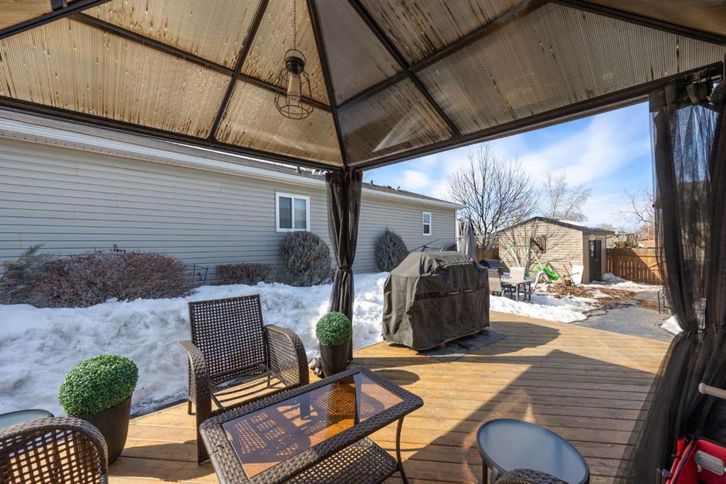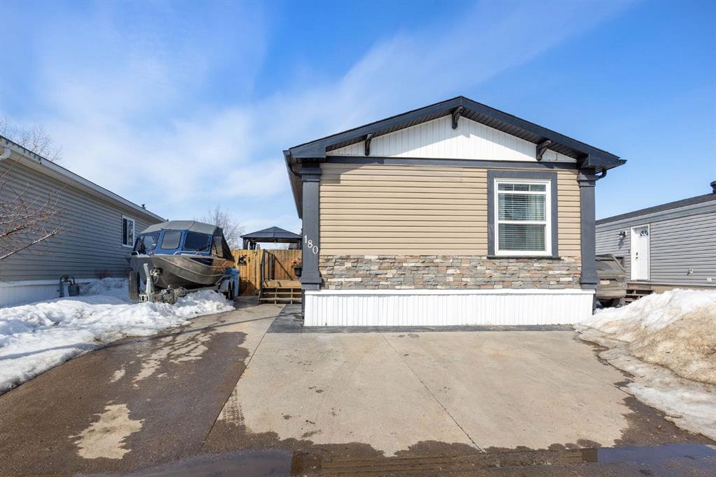 Welcome to 180 Grenfell Crescent—a home that truly raises the bar with beautiful finishes, thoughtful design, and outdoor features you won’t find anywhere else nearby. From the moment you step inside, you will feel at home, greeted by a spacious entry with a custom built-in bench, creating a warm and functional first impression. This former show home offers a unique, thoughtfully designed layout with vaulted ceilings and a bright open-concept living space. The kitchen is truly next-level—easily rivaling those in high-end homes—with a gas stove, built-in oven and microwave, wine fridge, silgranite sink, oversized island, and an abundance of pot and pan drawers. Whether you love to cook or entertain, this space delivers. Just off the kitchen, a dedicated office area provides the perfect setup for working from home or managing busy family life. The primary suite featuring a walk-in closet and a luxurious 5-piece ensuite with dual sinks, jet tub, separate shower, and beautiful natural light through 2 large windows. Two additional bedrooms and a full bathroom at the front of the home complete the interior. Step outside and you’ll quickly see what makes this property truly exceptional. Over $50,000 in concrete work creates a stunning and low-maintenance outdoor space, including an exposed aggregate driveway with stamped concrete borders—offering parking for up to four vehicles or room for your boat. The backyard is designed for both relaxation and functionality, with a deck and gazebo, plus a gorgeous stamped concrete patio and walkway. And then there’s the showstopper: a 16’ x 24’ heated shed with 10-foot ceilings, a wood stove, and ample storage—perfect as the ultimate man cave, workshop, or hobby space. A second shed adds even more storage, while a double swinging gate provides easy access to the green space behind. With upgrades throughout—including newer LVP flooring, upgraded lighting, neutral paint, and the added stability of 8 ft concrete pilings—this home offers unmatched value, style, and versatility. A rare opportunity you won’t want to miss. Flexible possession available and condo fees include water and sewer.