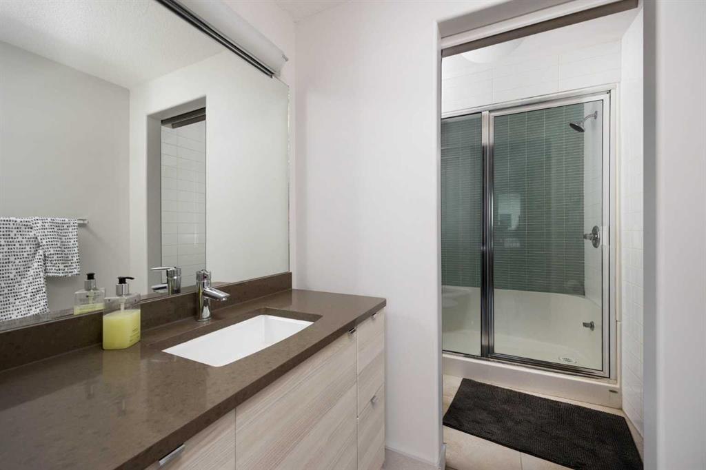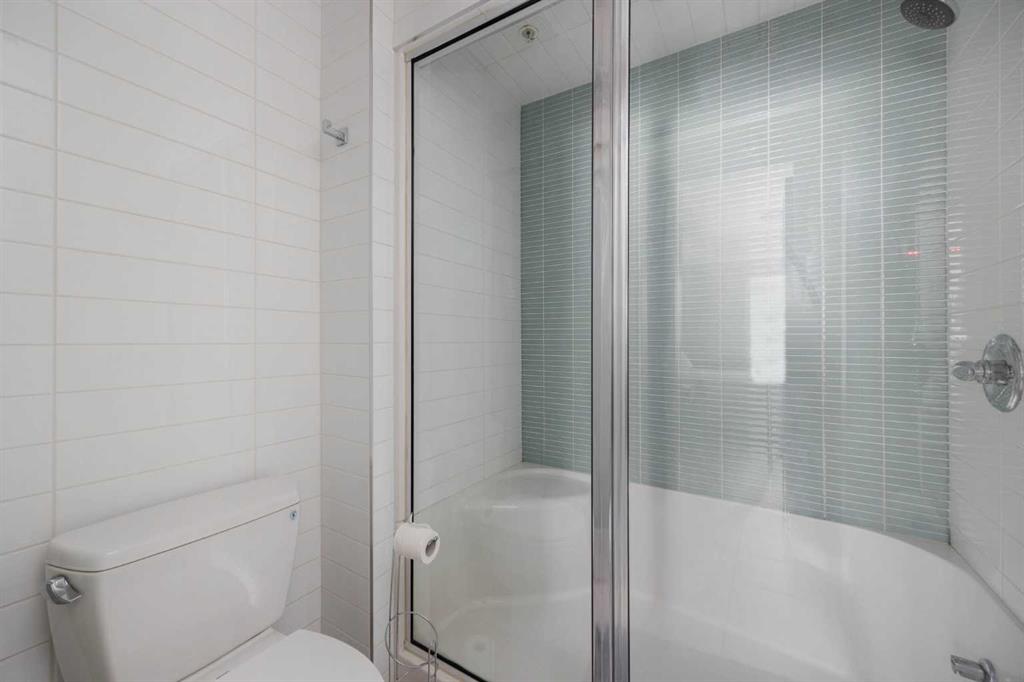 The primary bedroom feels like a calm retreat. European style closets keep everything neat and organized, and the ensuite is pure comfort with heated floors and a steam shower. The second bedroom and full three-piece bath give space for guests, a home office or both.