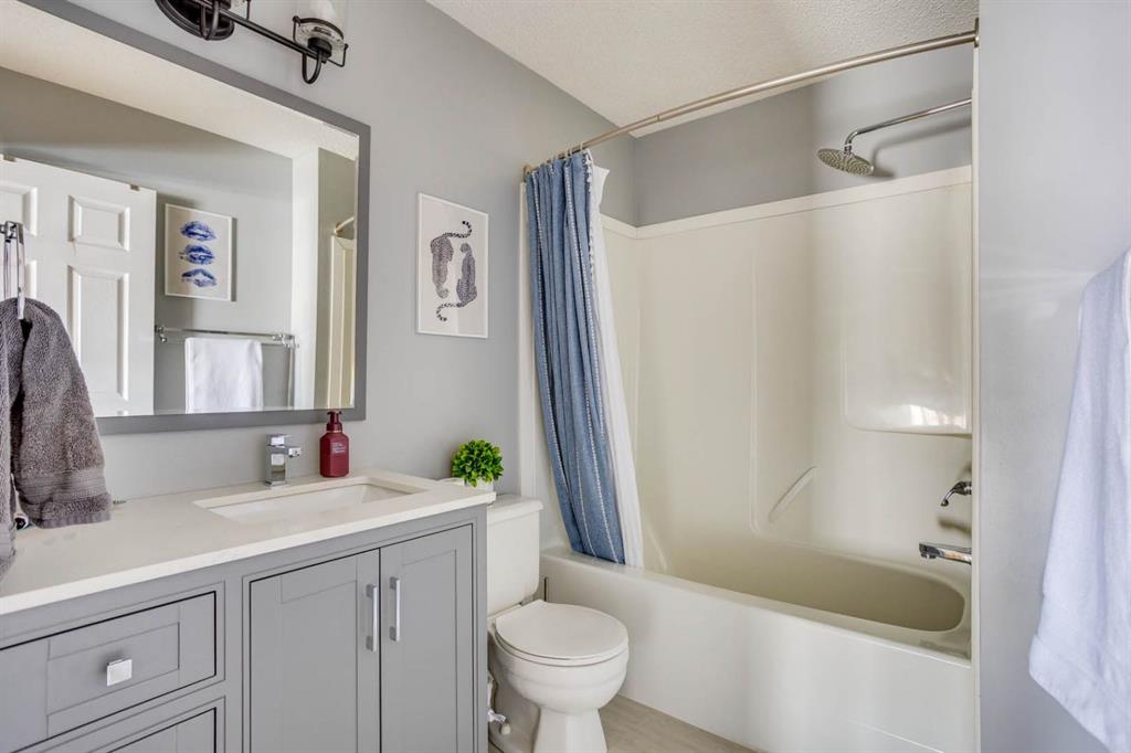 The updated kitchen is sure to impress, featuring freshly painted cabinets, quartz countertops, stainless steel appliances, and a modern tile backsplash. A formal dining area provides the perfect setting for family meals and gatherings. The main floor also offers the convenience of laundry, along with three generously sized bedrooms and two full bathrooms.