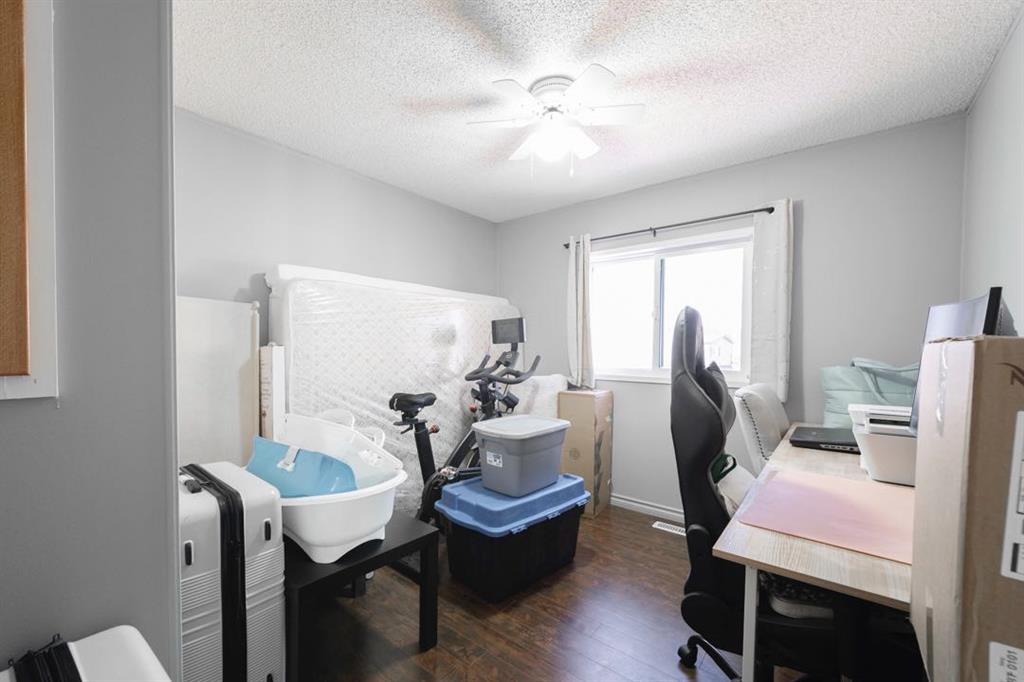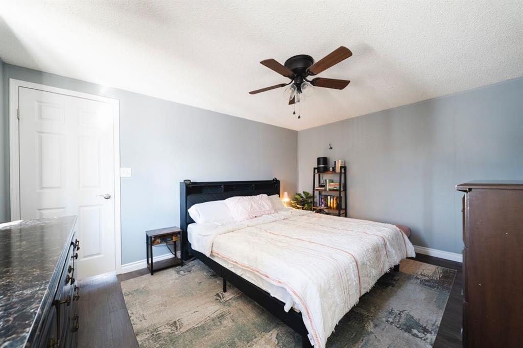 The primary bedroom comfortably fits a king size bed and includes a walk-in closet and a four-piece ensuite. Two additional bedrooms are found on the other side of the home both offering flexibility for families or a home office setup. A second four-piece bathroom serves the additional bedrooms, and a dedicated laundry room rounds out the interior.