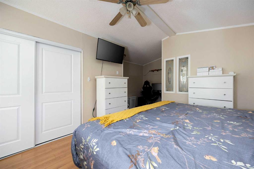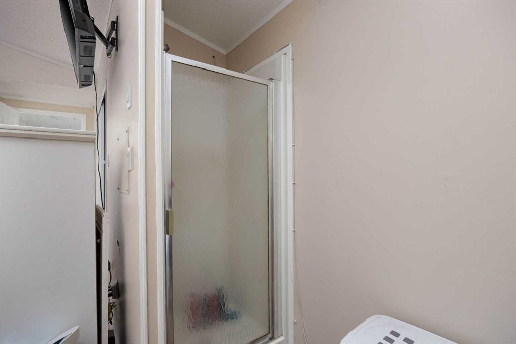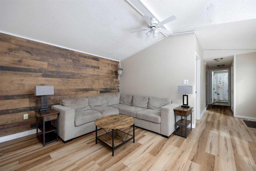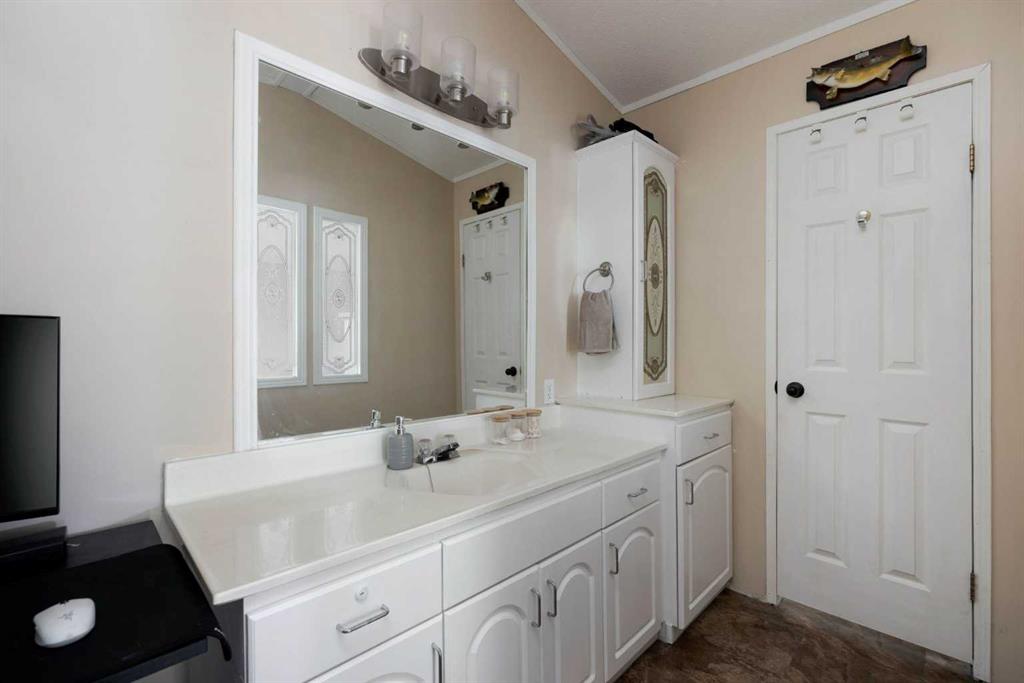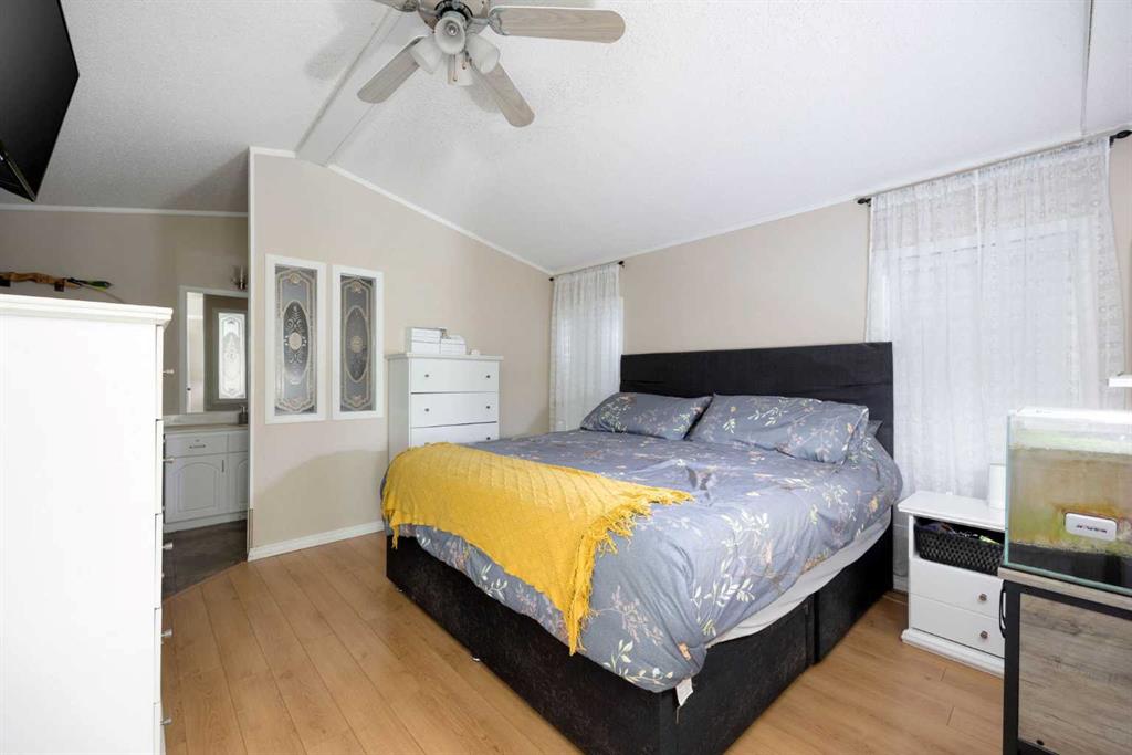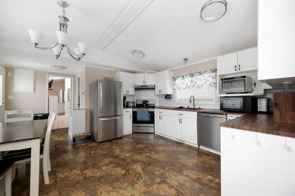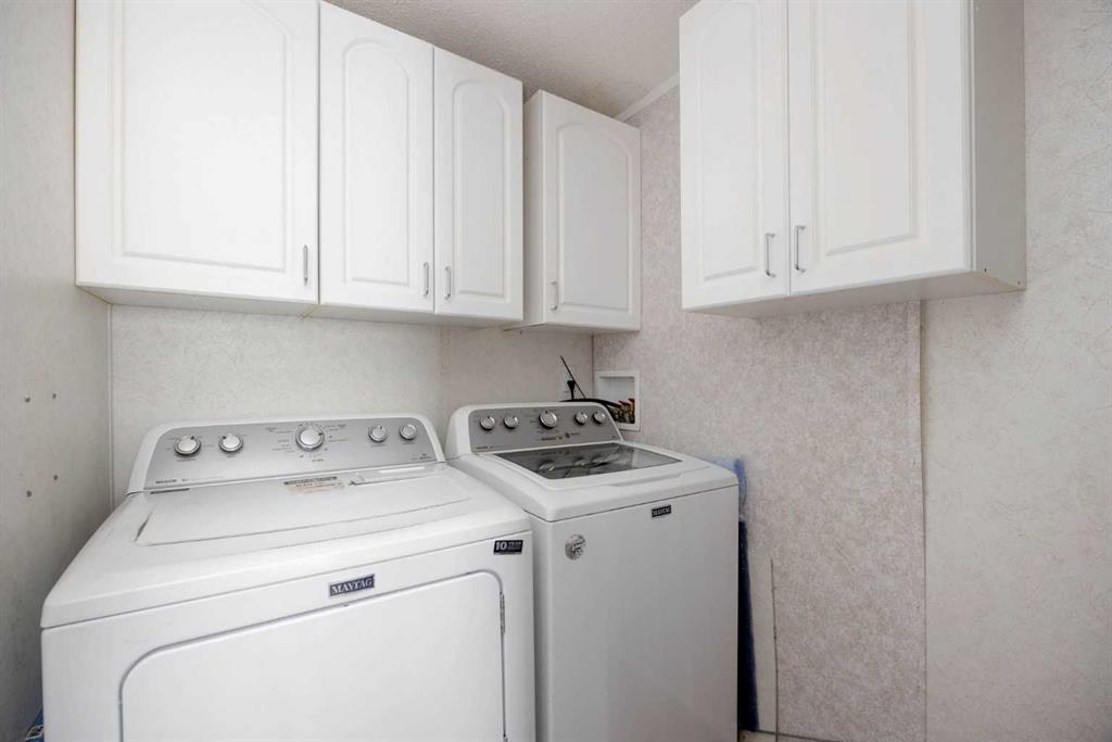 All 1,216 square feet on one level. No stairs, no basement to finish, nothing wasted. The primary bedroom fits a king bed and walks straight into a 3 piece ensuite. Two more bedrooms, a 4 piece main bath, and a proper laundry room with upper cabinets and a Maytag washer and dryer included.
