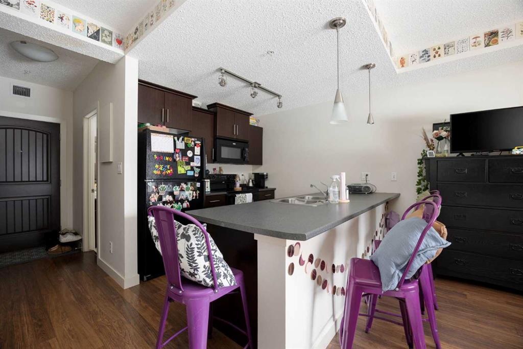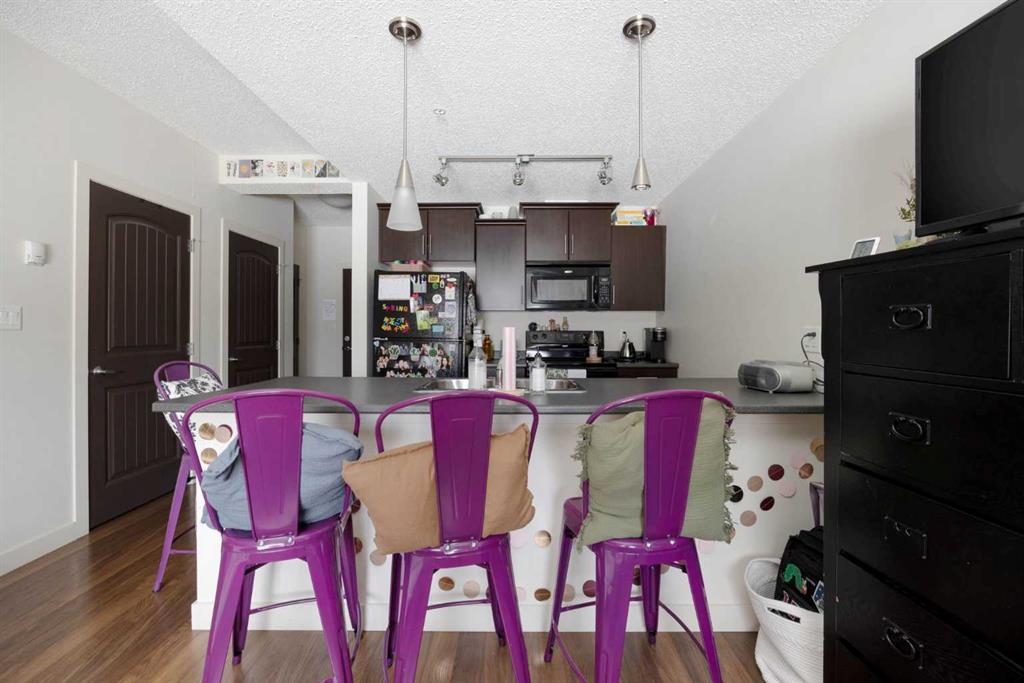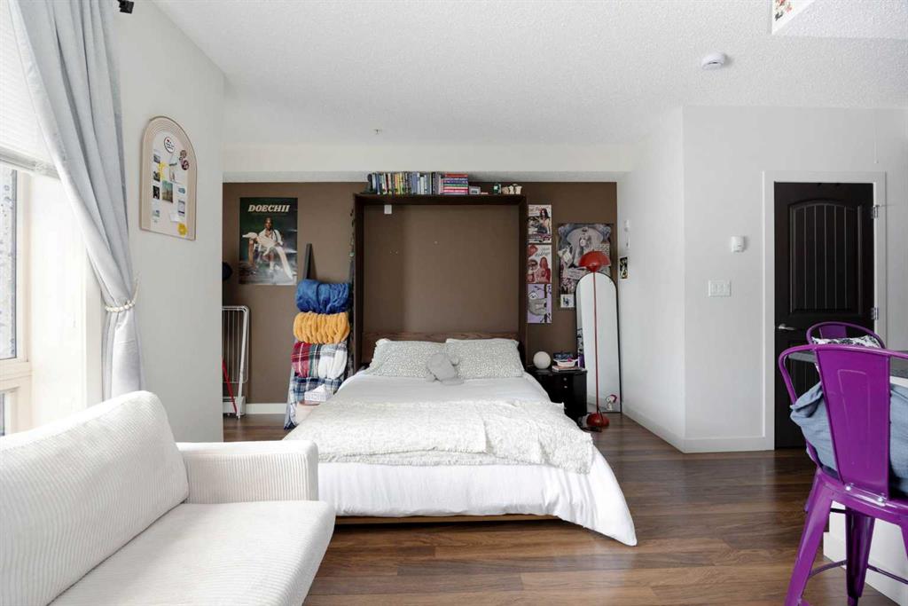 Whether you are downsizing, breaking into ownership or looking for a sure-fire investment property, this one is going to check all of the boxes. This studio suite has laminate floors, a built-in Murphy bed, is located on the main floor for easy access, has a patio with a gas BBQ line, and to top it off, has a secured underground parking spot! The Summits are concrete-built with amenities, secured parking, storage, a playground and are just steps from the Commons at Eagle Ridge, Stoney Creek Village, schools and restaurants!