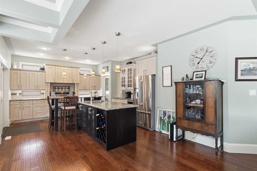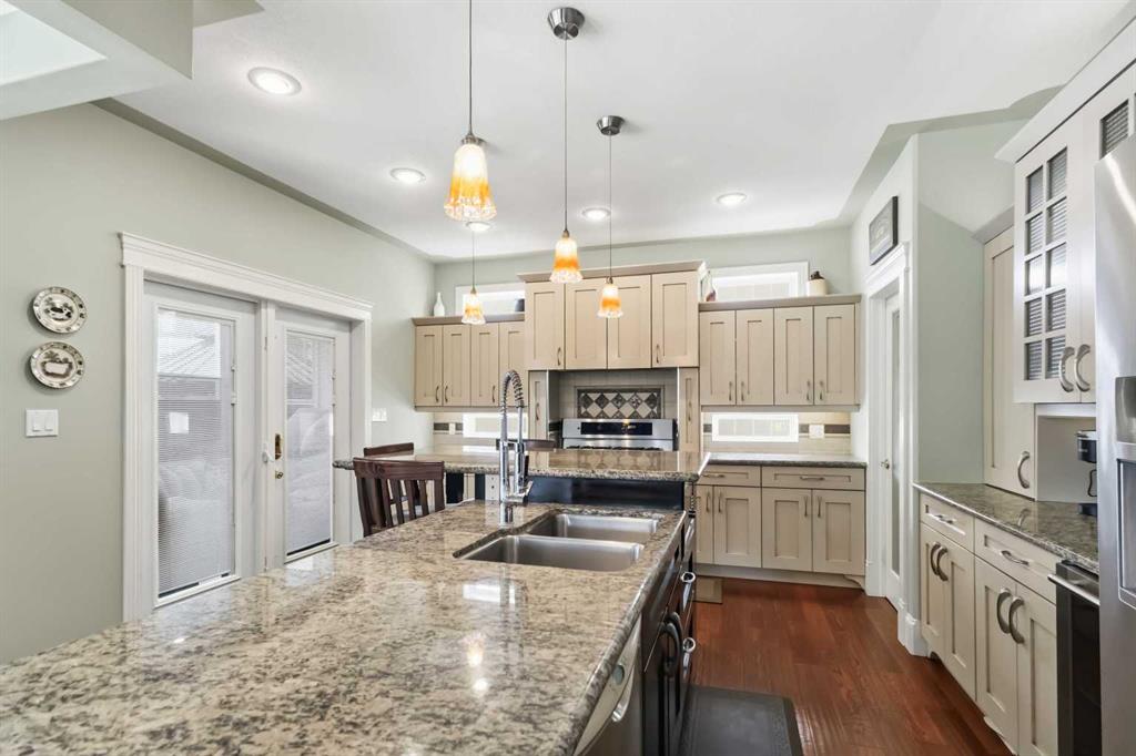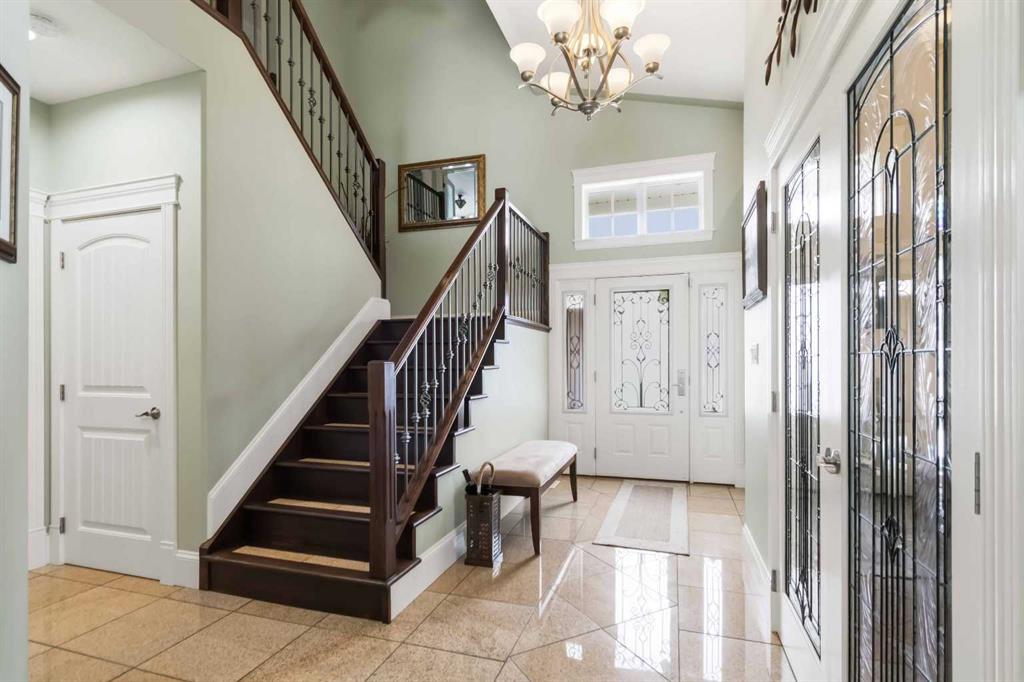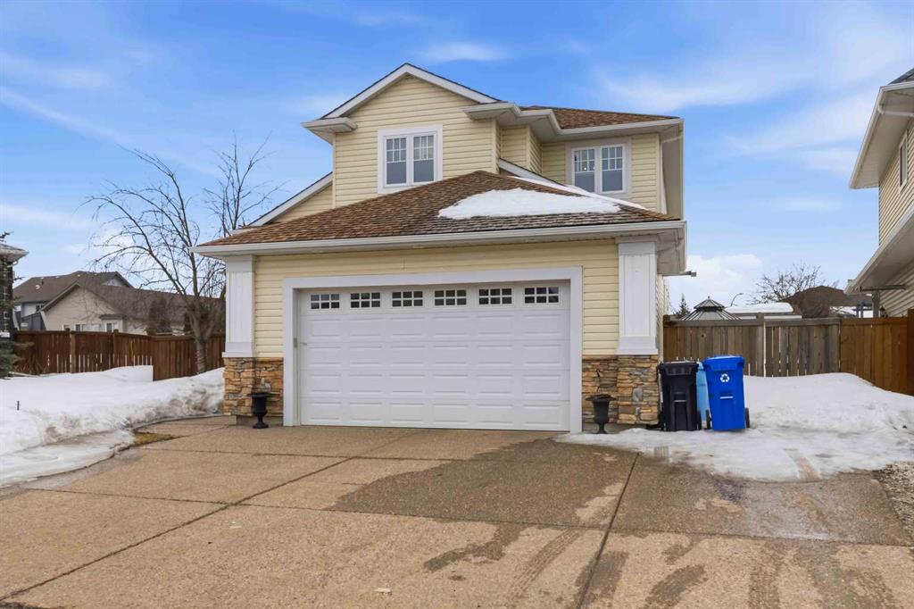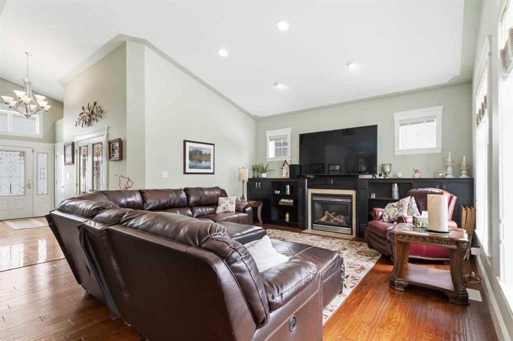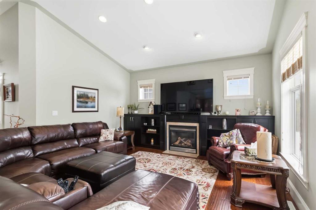 Open house Saturday April 25th 1-3 pm. TIMELESS MASTERPIECE, IN A QUIET CUL DE SAC, COMPLETE WITH ALL THE MOST WANTED FEATURES AND SITUATED ON A PIE SHAPED LOT. One-of-a-kind CUSTOM-BUILT HOME with over 3600 SQ FT OF LIVING SPACE. Step into this stunning home that you enter into a large front foyer featuring vaulted ceiling, this area leads you to a front office with double French doors, hardwood floors. The Hardwood floors continue throughout the main level living area. The great room features gas fireplace with built in cabinets. This open concept living area continues with a stunning dining room with coffered ceiling, Then a Custom kitchen featuring built in appliances, 6 top gas stove, wine cooler, double drawer dishwasher, granite countertops, eat up breakfast bar, and a huge walk through pantry with even room for a stand-up freezer. Just off the kitchen you have a heated all season sun room that overlooks your private yard and features a fireplace. The Main floor laundry room offers tons of built in cabinets and counter top space. The Gorgeous staircase covered in hardwood leads you to your upper level that offers 3 bedrooms all with hardwood floors. The Primary bedroom a gas fireplace, garden doors to a private balcony, and a walk in closet with custom built in shelving, a 5 pc ensuite with double sinks, tile floors, and air tub. The Lower level offers a place where you will entertain your guests. This space offers engineered hardwood floors, a sit up wet bar, pool table and games room , and a soundproofed theatre room. Your family will be the envy of the neighborhood with this lower level. The lower level is complete with a large 4th bedroom and full bathroom with heated floors. This no carpet home, has additional features of hot water on demand, solid core doors, new upgraded triple glaze windows, new furnace in 2025, central a/c, central vac, oversized double attached garage with a new garage heater in past 3 years. The exterior of the home features, a private and landscaped yard, with tons of mature trees and shrubs, a fenced yard with gates, RV parking, extra wide exposed aggregate driveway and walk way, plus , 2 tired deck that is wired for a Hot tub. Pride of ownership shines through this home that has been completed with Timeless finishing's from top to bottom. All of this and perfectly located within walking distance of trails, parks, schools and shopping. Call today for your personal tour.