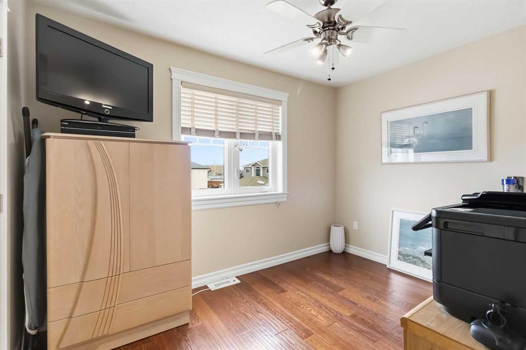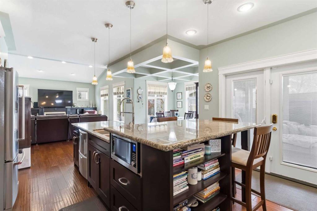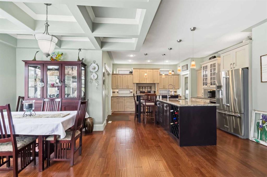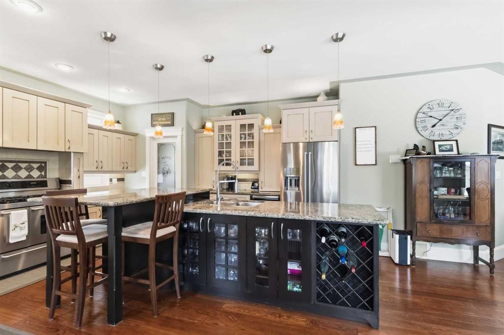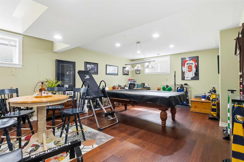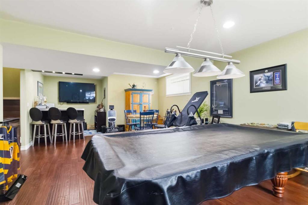 Open house Saturday April 25th 1-3 pm. TIMELESS MASTERPIECE, IN A QUIET CUL DE SAC, COMPLETE WITH ALL THE MOST WANTED FEATURES AND SITUATED ON A PIE SHAPED LOT. One-of-a-kind CUSTOM-BUILT HOME with over 3600 SQ FT OF LIVING SPACE. Step into this stunning home that you enter into a large front foyer featuring vaulted ceiling, this area leads you to a front office with double French doors, hardwood floors. The Hardwood floors continue throughout the main level living area. The great room features gas fireplace with built in cabinets. This open concept living area continues with a stunning dining room with coffered ceiling, Then a Custom kitchen featuring built in appliances, 6 top gas stove, wine cooler, double drawer dishwasher, granite countertops, eat up breakfast bar, and a huge walk through pantry with even room for a stand-up freezer. Just off the kitchen you have a heated all season sun room that overlooks your private yard and features a fireplace. The Main floor laundry room offers tons of built in cabinets and counter top space. The Gorgeous staircase covered in hardwood leads you to your upper level that offers 3 bedrooms all with hardwood floors. The Primary bedroom a gas fireplace, garden doors to a private balcony, and a walk in closet with custom built in shelving, a 5 pc ensuite with double sinks, tile floors, and air tub. The Lower level offers a place where you will entertain your guests. This space offers engineered hardwood floors, a sit up wet bar, pool table and games room , and a soundproofed theatre room. Your family will be the envy of the neighborhood with this lower level. The lower level is complete with a large 4th bedroom and full bathroom with heated floors. This no carpet home, has additional features of hot water on demand, solid core doors, new upgraded triple glaze windows, new furnace in 2025, central a/c, central vac, oversized double attached garage with a new garage heater in past 3 years. The exterior of the home features, a private and landscaped yard, with tons of mature trees and shrubs, a fenced yard with gates, RV parking, extra wide exposed aggregate driveway and walk way, plus , 2 tired deck that is wired for a Hot tub. Pride of ownership shines through this home that has been completed with Timeless finishing's from top to bottom. All of this and perfectly located within walking distance of trails, parks, schools and shopping. Call today for your personal tour.
