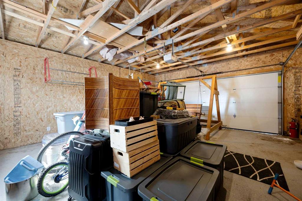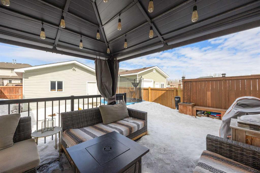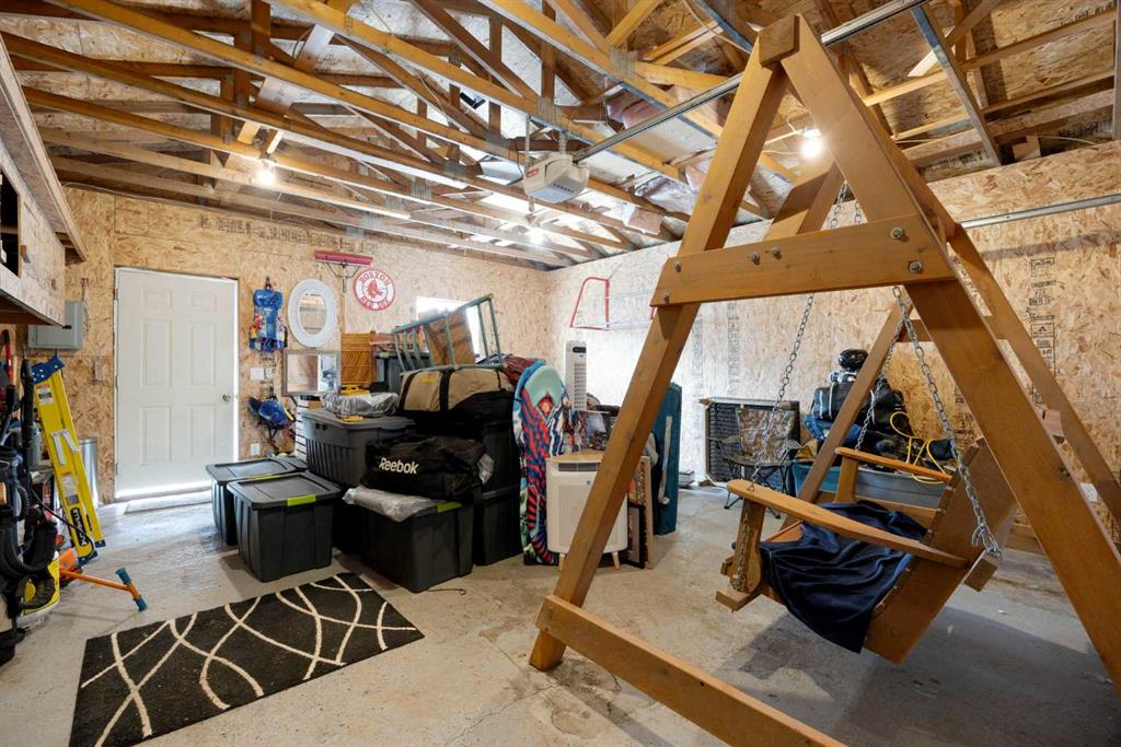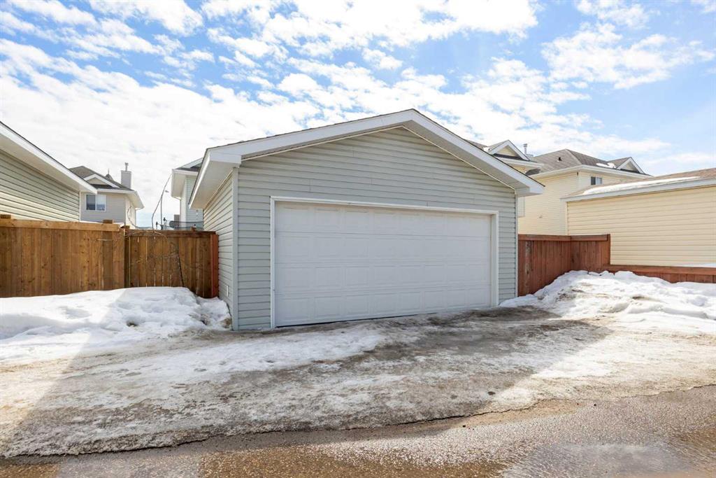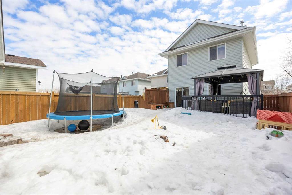 Out back, the yard is a great size and absolutely passes the trampoline test, with a wood bench and privacy wall (2025) on the deck creating a cozy outdoor hangout space. The double detached garage offers plenty of room, plus the rare bonus of having space to park a full-size truck sideways in front of the garage for additional parking.