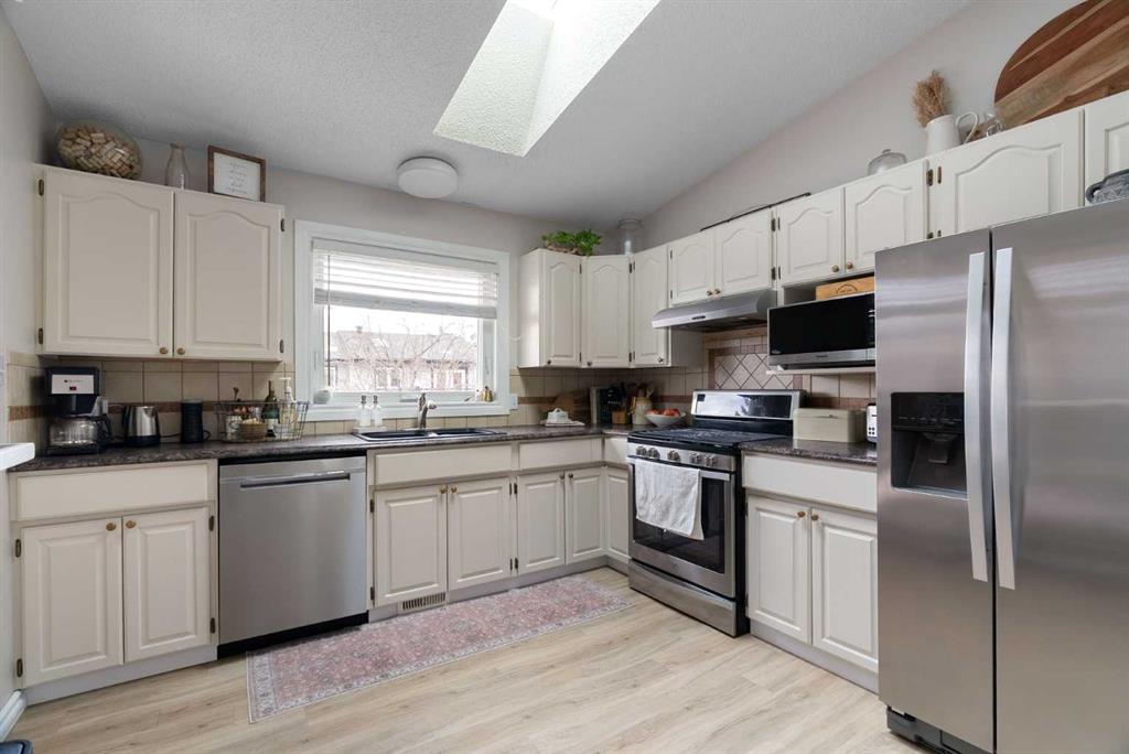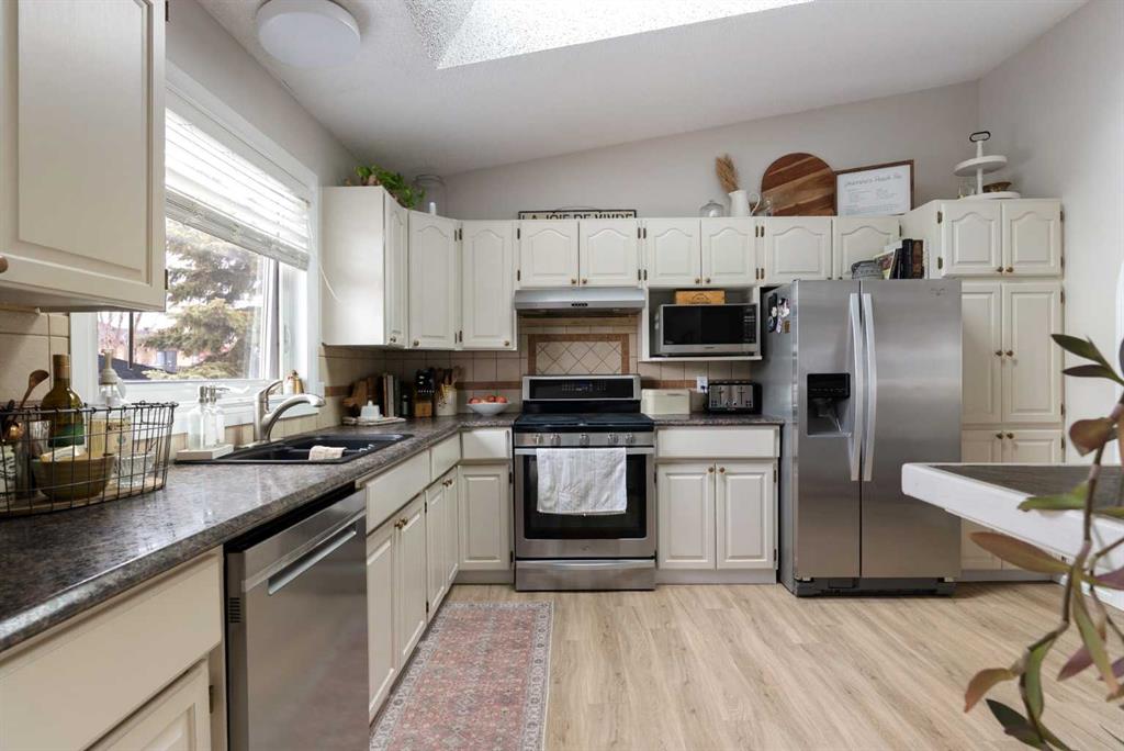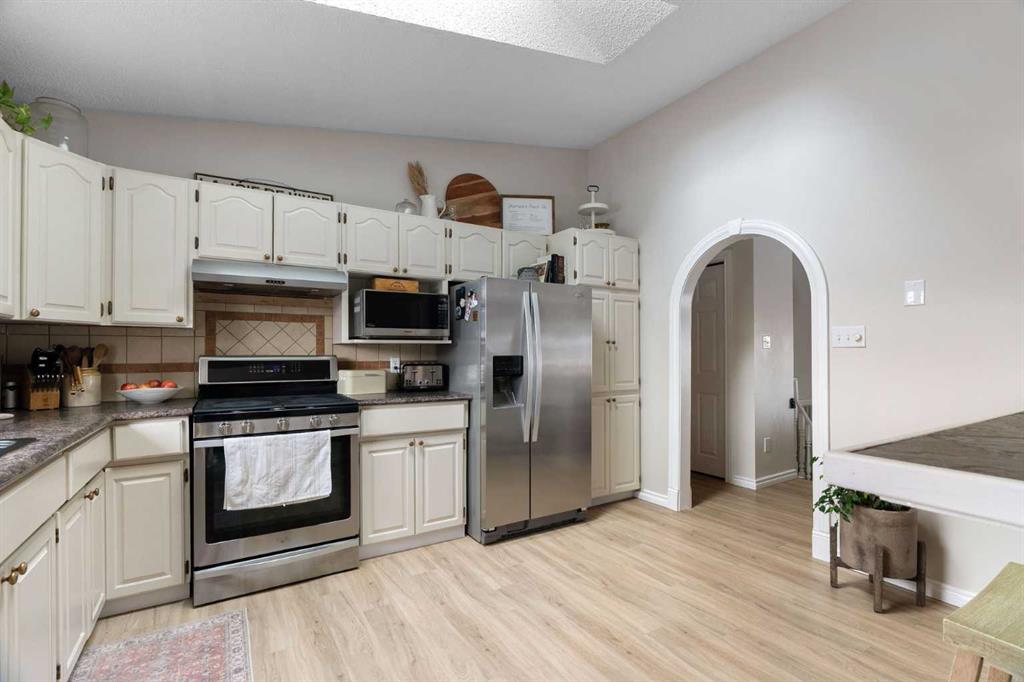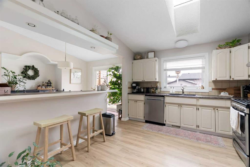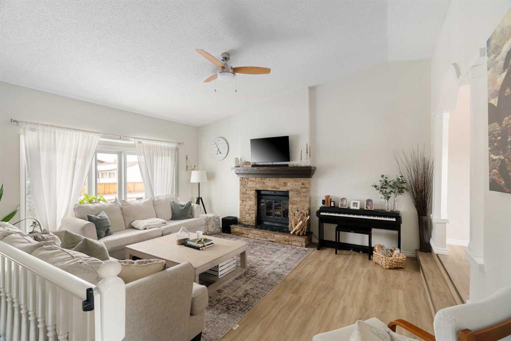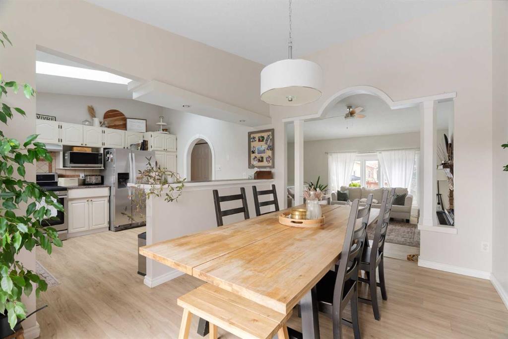 Welcome to 109 Bergeron Road, a charming and thoughtfully updated bi-level home located in the desirable community of Timberlea, offering over 2,600 sq ft of living space, CENTRAL AIR, and a HEATED DOUBLE ATTACHED GARAGE. This 4-bedroom, 3-bathroom home features a bright and functional layout with vaulted ceilings and an open-concept main living area filled with natural light. The spacious living room showcases a brick mantel gas fireplace and flows seamlessly into the dining area through an arched doorway with decorative columns, leading into the well-appointed kitchen complete with ample cabinetry, a skylight, breakfast bar, and sliding doors providing access to the rear deck—ideal for both everyday living and entertaining. The primary bedroom offers a walk-in closet and private 3-piece ensuite, while two additional bedrooms and a full bathroom complete the main level. The fully finished basement provides excellent additional space with a large recreation room, a sunken TV room, a fourth bedroom, a full bathroom, a dedicated laundry room, and plenty of storage throughout. This home has seen numerous important updates including furnace, hot water tank, and central A/C (2017–2019), windows and doors (approx. 7 years), roof and skylight (approx. 5 years), and blown-in insulation in late 2016, along with fresh paint in recent years. Step outside to enjoy the fully fenced yard featuring a NEW deck and railing (2024), playground, natural gas BBQ hookup, fire pit area, and a shed. Conveniently located close to parks, schools, shopping, and walking trails, this property offers an excellent combination of space, updates, and location—perfect for families. Book your private showing today!