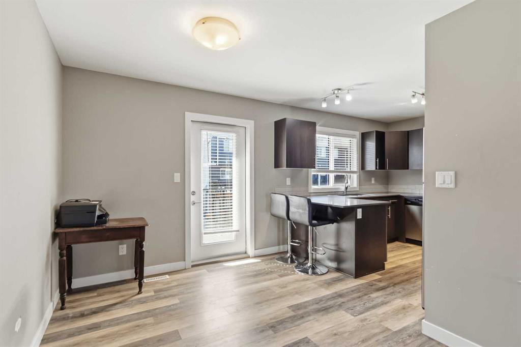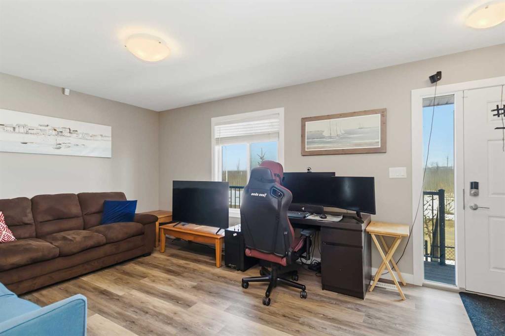 Step inside the bright and spacious main floor featuring durable laminate flooring throughout. The living room is warm and inviting, offering a comfortable space to relax or entertain. The kitchen is both elegant and practical, showcasing quartz countertops, stainless steel appliances, ample cabinetry, and a convenient breakfast bar. Just off the dining area, patio doors lead to a deck complete with a natural gas BBQ hookup—perfect for morning coffee or summer gatherings. A well-appointed 2-piece powder room completes this level.