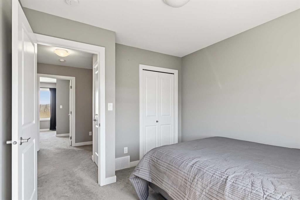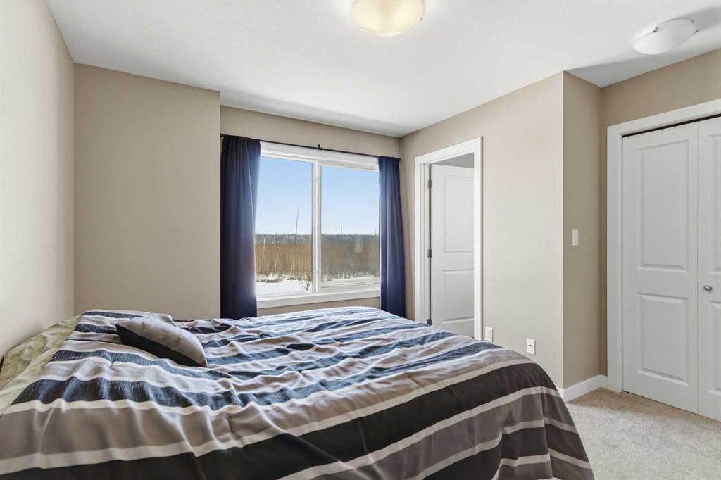 Upstairs, you’ll find three generously sized bedrooms, all with plush carpet for added comfort. The spacious primary bedroom features a large closet and a private 4-piece ensuite. A second full bathroom serves the additional bedrooms, making this layout ideal for families or guests.