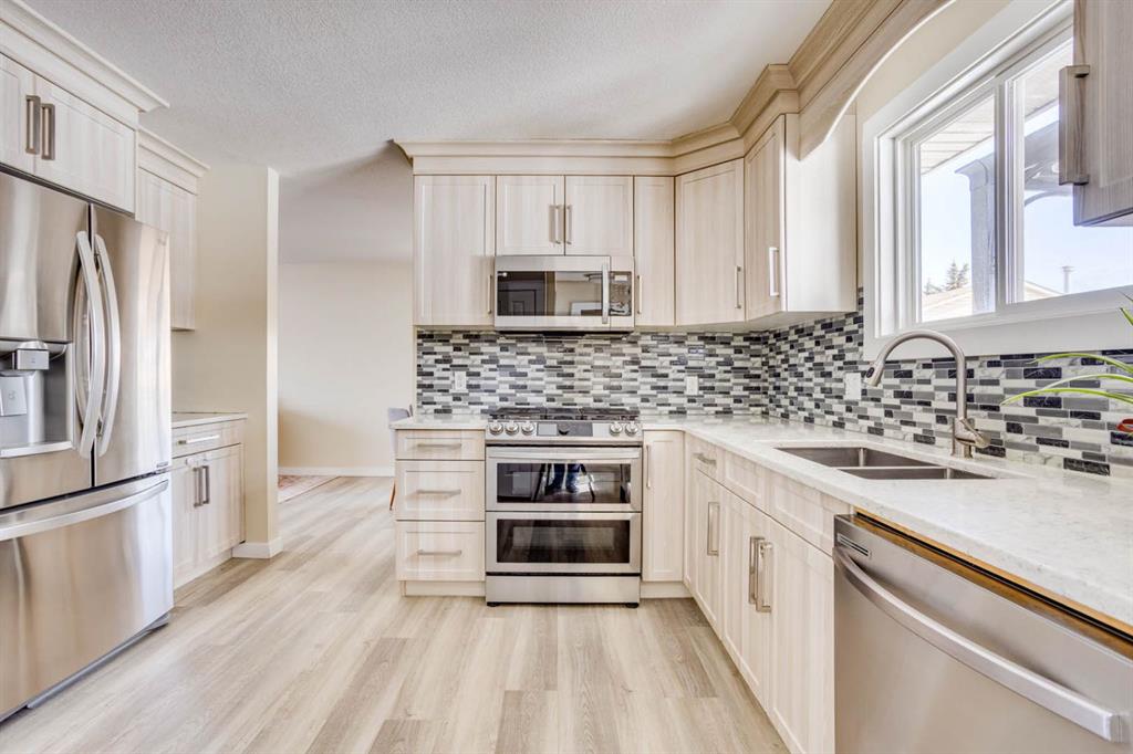 The fully renovated kitchen is a true highlight, thoughtfully redesigned with granite countertops, custom cabinetry, stainless steel appliances including a gas stove, a stylish backsplash, and updated fixtures—making it both functional and visually stunning. The main floor also features a spacious primary bedroom complete with a beautifully renovated 4-piece ensuite and dual closets, along with two additional well-sized bedrooms and a second full 4-piece bathroom. Adding to the home’s appeal, the ceiling on the main level has also been recently redone, enhancing the overall look and feel of the space.