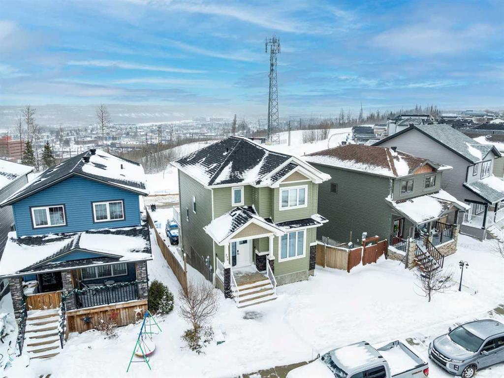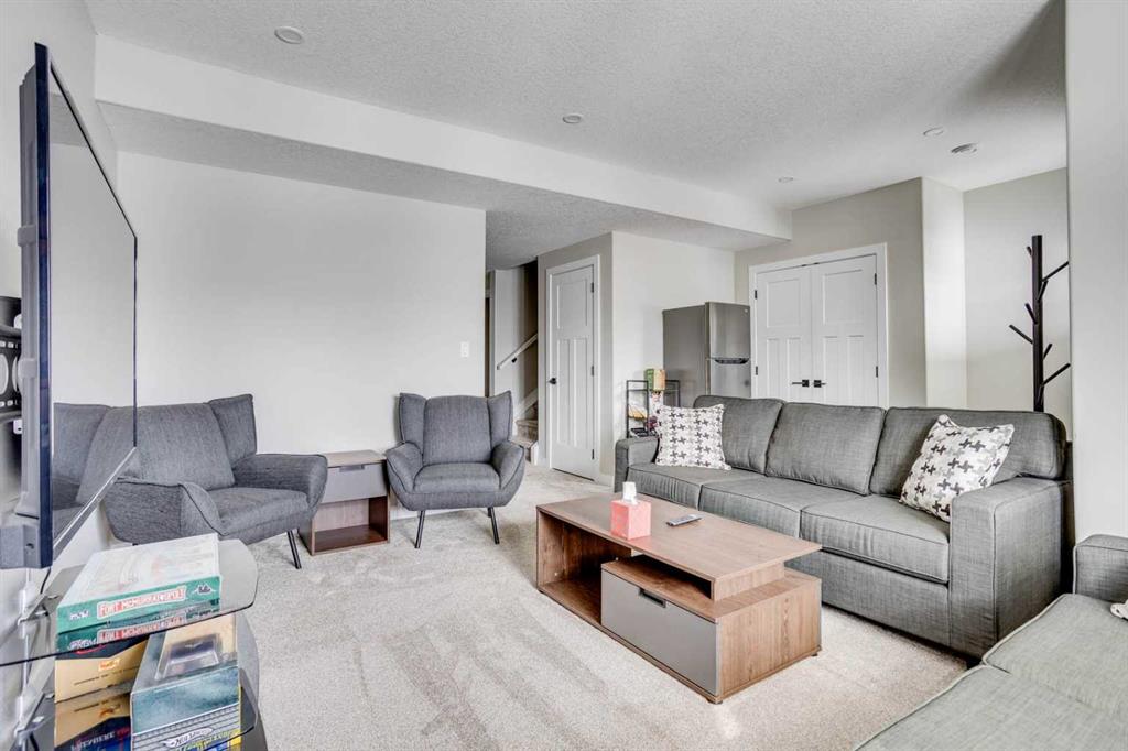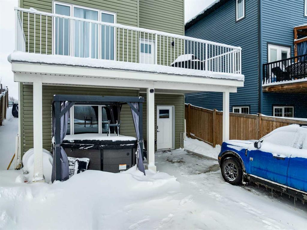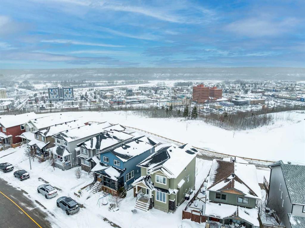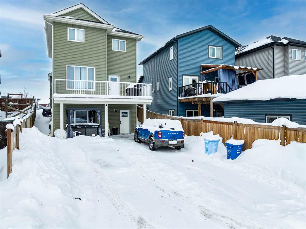 Modern style meets an unbeatable location in this beautifully updated home backing onto a serene treeline with views of downtown. Step inside to the main floor where you’re greeted by a bright, open-concept living area featuring newer luxury vinyl plank flooring and a sleek electric fireplace. Perfect for both relaxing and entertaining. The space flows seamlessly into the modern kitchen, complete with quartz countertops, crisp white cabinetry, and new black stainless-steel appliances, offering both style and functionality. Rounding out the main level is a convenient 2-piece powder room and access to the balcony, where you can unwind while taking in treeline privacy and city views. Upstairs, the spacious primary bedroom offers a peaceful retreat with its own 4-piece ensuite bathroom. This level is completed by two additional well-sized bedrooms, a 4-piece main bathroom, and the added convenience of an upper-floor laundry room featuring new washer and dryer. The fully developed basement adds even more living space, featuring a rec room, an additional bedroom, and a full 4-piece bathroom. With a walkout to the backyard parking, this level offers flexibility for guests and family. Situated along a treeline and just steps from trail systems, this home combines modern living with access to nature, all in a desirable location. Book your showing today!