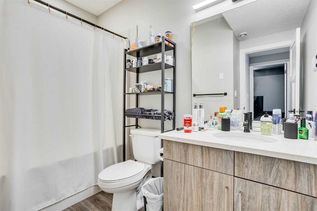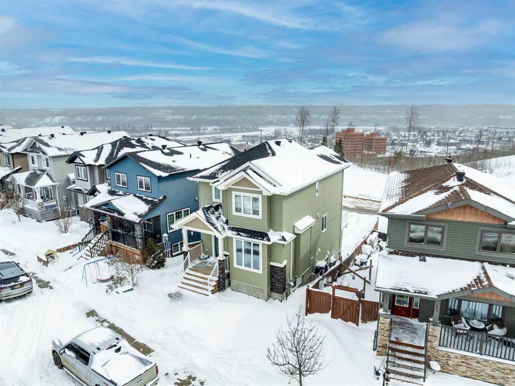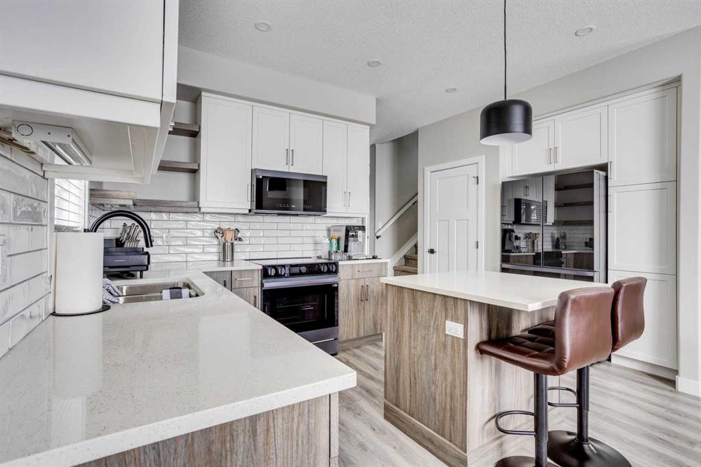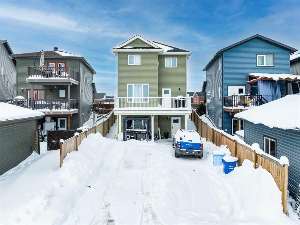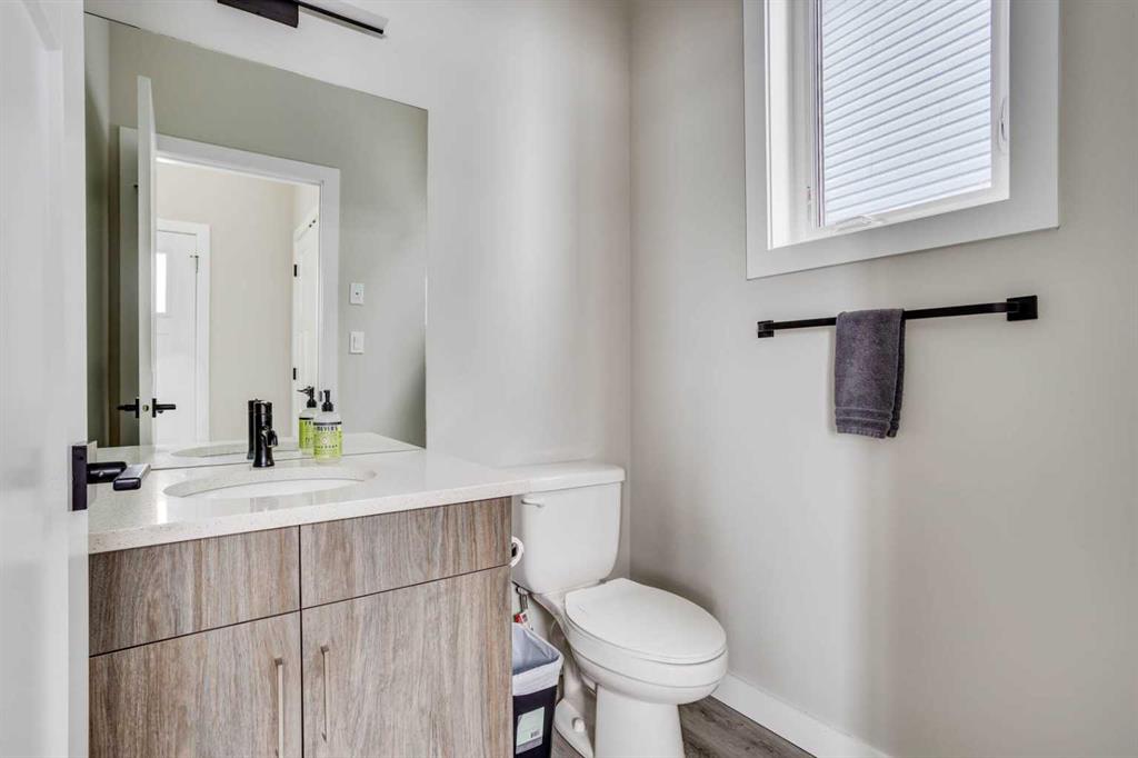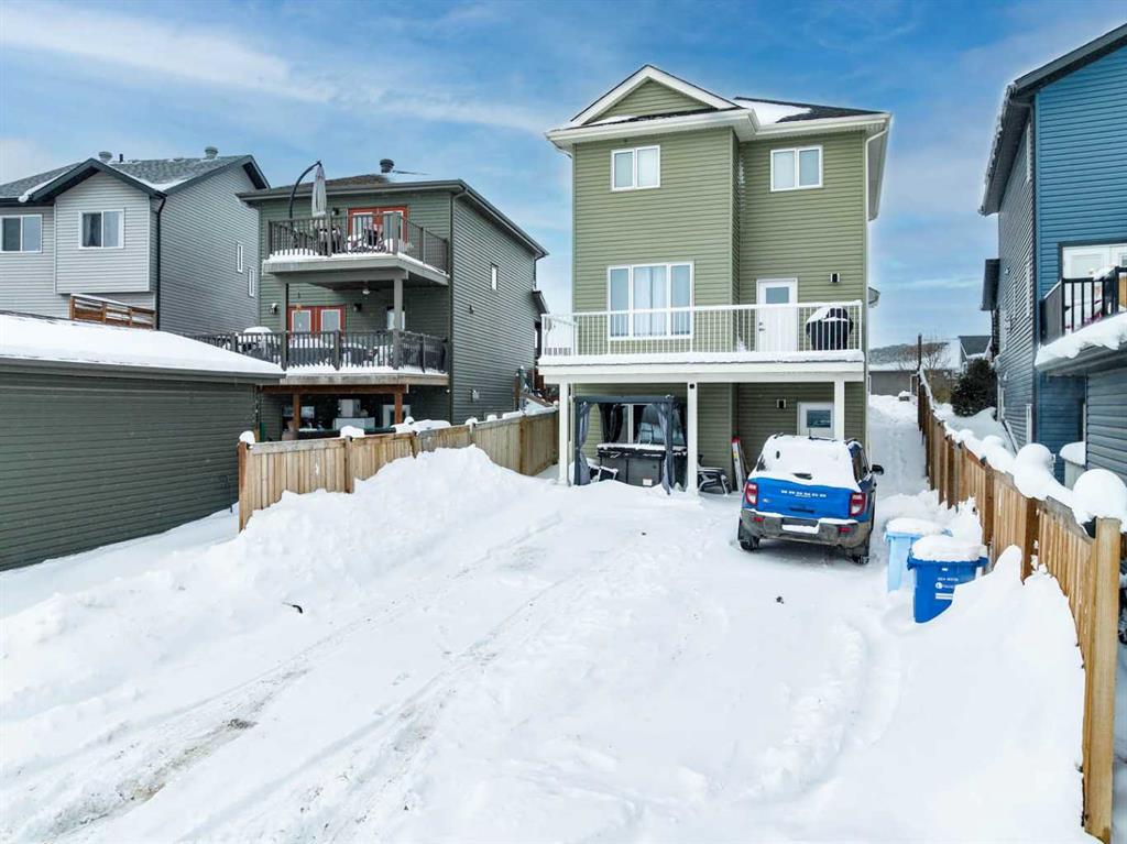 Modern style meets an unbeatable location in this beautifully updated home backing onto a serene treeline with views of downtown. Step inside to the main floor where you’re greeted by a bright, open-concept living area featuring newer luxury vinyl plank flooring and a sleek electric fireplace. Perfect for both relaxing and entertaining. The space flows seamlessly into the modern kitchen, complete with quartz countertops, crisp white cabinetry, and new black stainless-steel appliances, offering both style and functionality. Rounding out the main level is a convenient 2-piece powder room and access to the balcony, where you can unwind while taking in treeline privacy and city views. Upstairs, the spacious primary bedroom offers a peaceful retreat with its own 4-piece ensuite bathroom. This level is completed by two additional well-sized bedrooms, a 4-piece main bathroom, and the added convenience of an upper-floor laundry room featuring new washer and dryer. The fully developed basement adds even more living space, featuring a rec room, an additional bedroom, and a full 4-piece bathroom. With a walkout to the backyard parking, this level offers flexibility for guests and family. Situated along a treeline and just steps from trail systems, this home combines modern living with access to nature, all in a desirable location. Book your showing today!