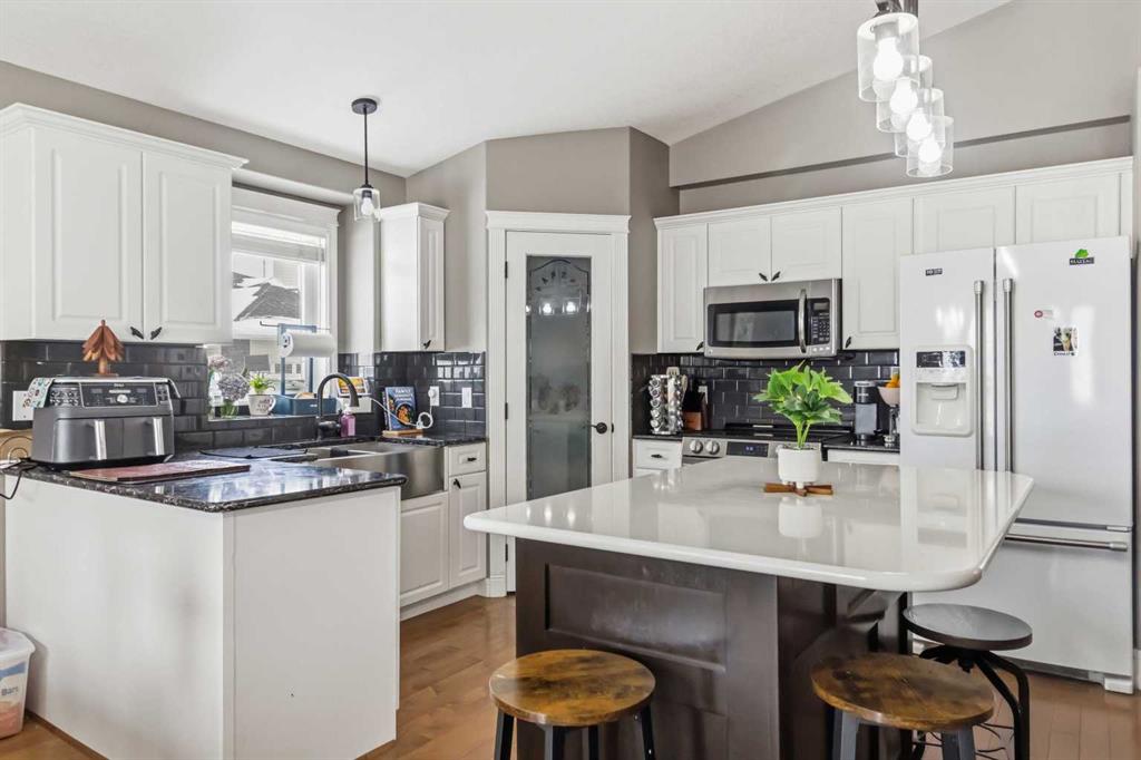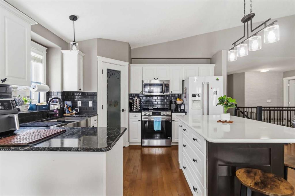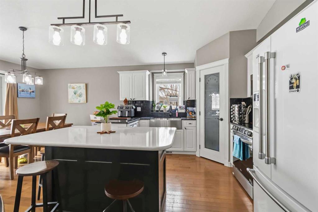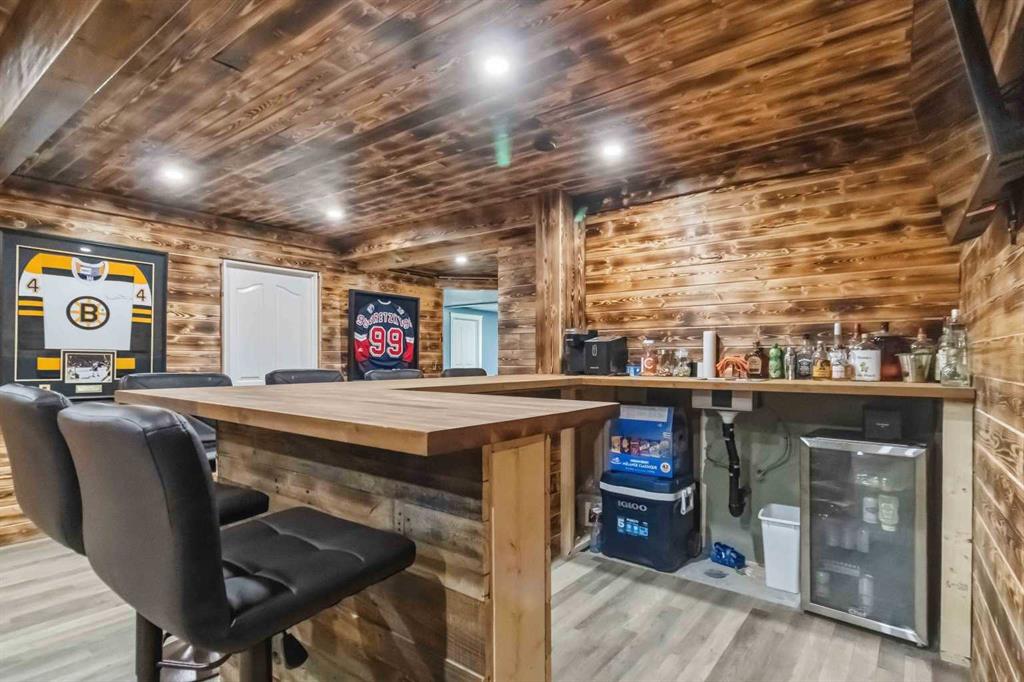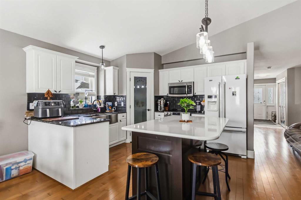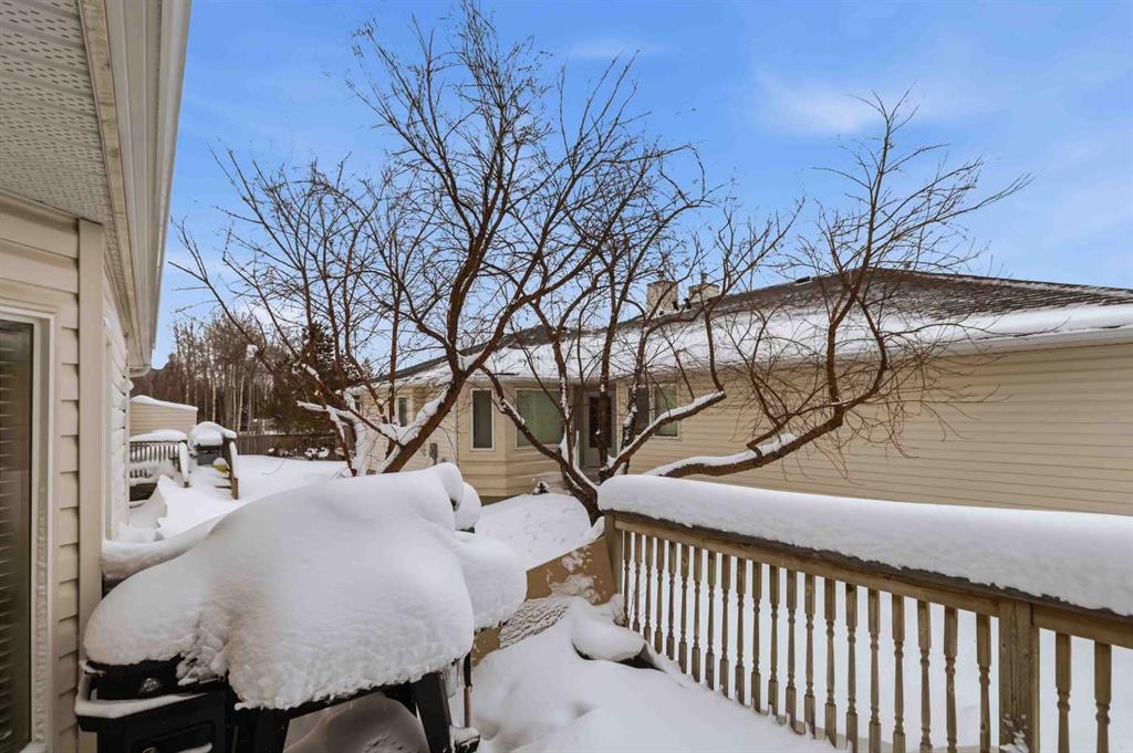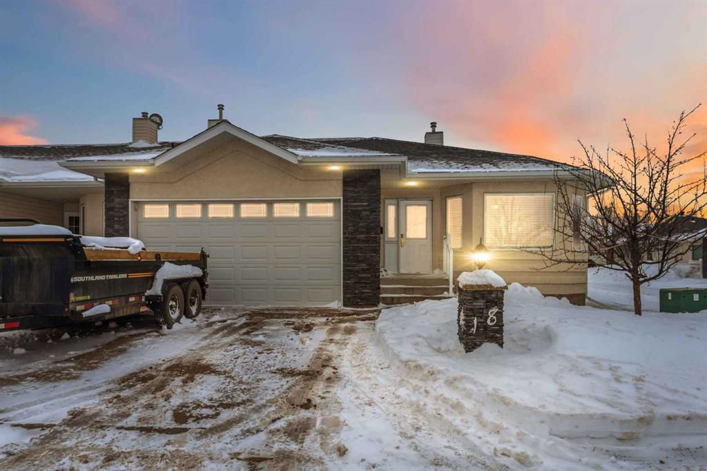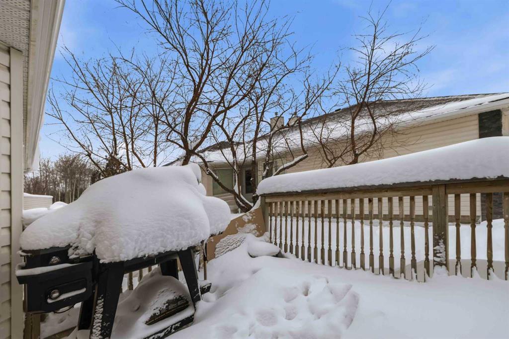Welcome to 264 J.W. Mann Drive #18, a charming and well-maintained bungalow-style half duplex located in a cul-de-sac on a corner lot within a quiet GATED COMMUNITY in Wood Buffalo, offering over 2,800 sq ft of total living space, CENTRAL AIR, and a HEATED DOUBLE ATTACHED GARAGE. This 4-bedroom, 3-bathroom home features a bright and functional open-concept layout with hardwood flooring and vaulted ceilings that enhance the sense of space throughout the main living area. The spacious living room with gas fireplace flows seamlessly into the dining area with French doors providing access to the rear deck, and into the well-appointed kitchen complete with ample cabinetry, granite countertops, a large island with breakfast bar, and a corner pantry—perfect for both everyday living and entertaining. The generously sized primary bedroom is accessed through French doors and features plush carpeting, a large walk-in closet, and a private ensuite with a jetted tub and heated toilet seat. A second bedroom, full bathroom, and convenient main floor laundry complete this level. The fully finished basement offers exceptional additional space with a large recreation room, a amazing newly updated bar area ideal for relaxed entertaining, two additional bedrooms, a full bathroom, and plenty of storage. This home also features a private deck with a privacy screen surrounded by mature trees. Enjoy low-maintenance living with condo fees that include common area maintenance, grass cutting, snow removal, water, sewer and exterior insurance. Located close to parks, schools, shopping, walking trails, and just down the road from the Fort McMurray Golf Course, this property offers a fantastic combination of space, comfort, and convenience. Book your private showing today!