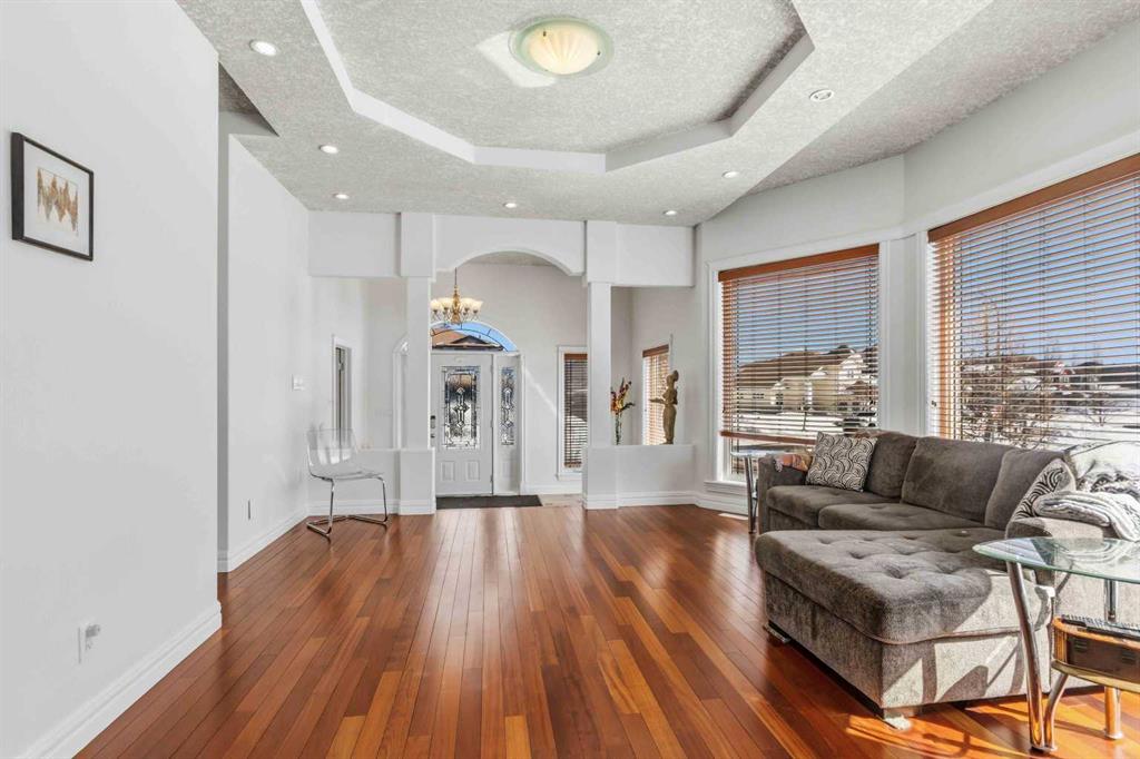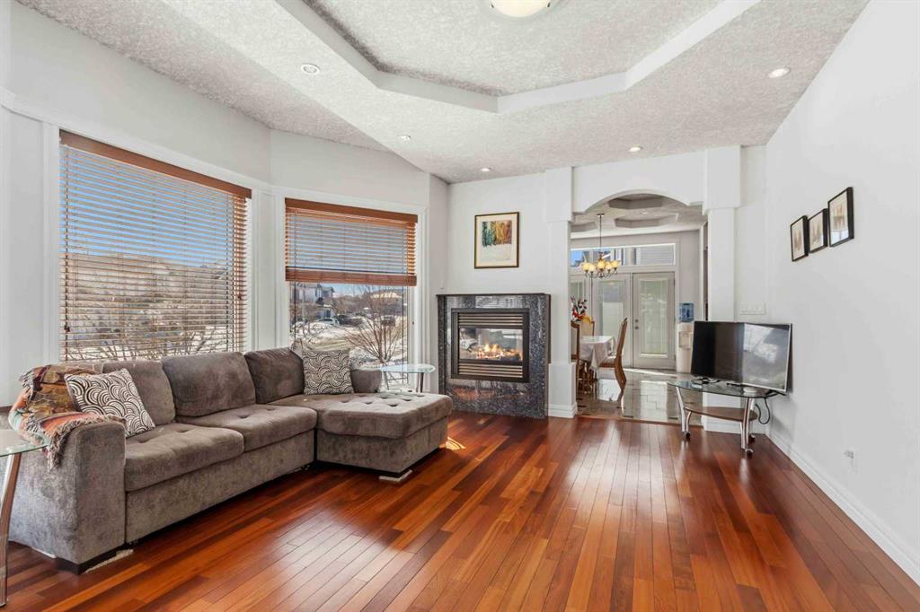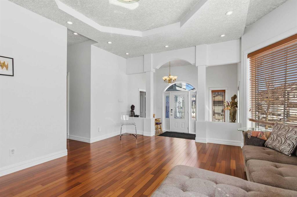 This custom-built executive raised modified bungalow offers an expansive 3,948 SF of total living space, masterfully designed to balance high-end luxury with exceptional functionality. The interior is defined by sophisticated details, including coffered ceilings, elegant crown moldings, and a seamless blend of hardwood and gleaming porcelain tile. Flooded with natural light through large windows, the home features a chef-inspired kitchen with a massive granite island and premium maple cabinetry that flows into a Great Room anchored by a two-way fireplace. The main floor is perfectly laid out for a growing family, offering two large bedrooms plus a versatile office den or entertainment room.